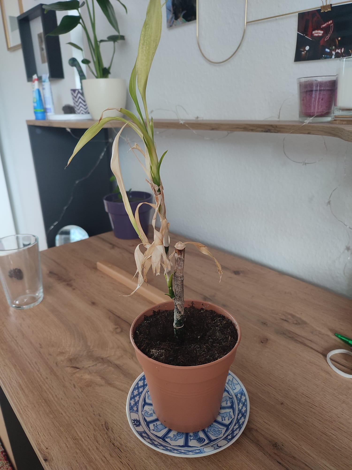 Sie hat offensichtlich viele vetrocknete Blätter und auch der Stamm ist ausgetrocknet, aber oben am Trieb kommen grüne Blätter nach. Hat vielleicht jemand irgendwelche Tipps, wie ich sie wieder aufpeppeln kann?