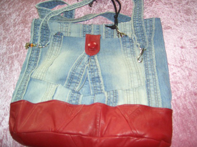 Die Jacke konnte ich einfach nicht wegwerfen und dachte es wäre schade um das schöne Leder. Ich habe es mir in Einzelteile zerlegt und habe einen Teil für diese Tasche verwendet. Die Hose meiner Tochter fand ich auch so außergewöhnlich dass ich mir dachte da kann man noch mal was draus basteln.