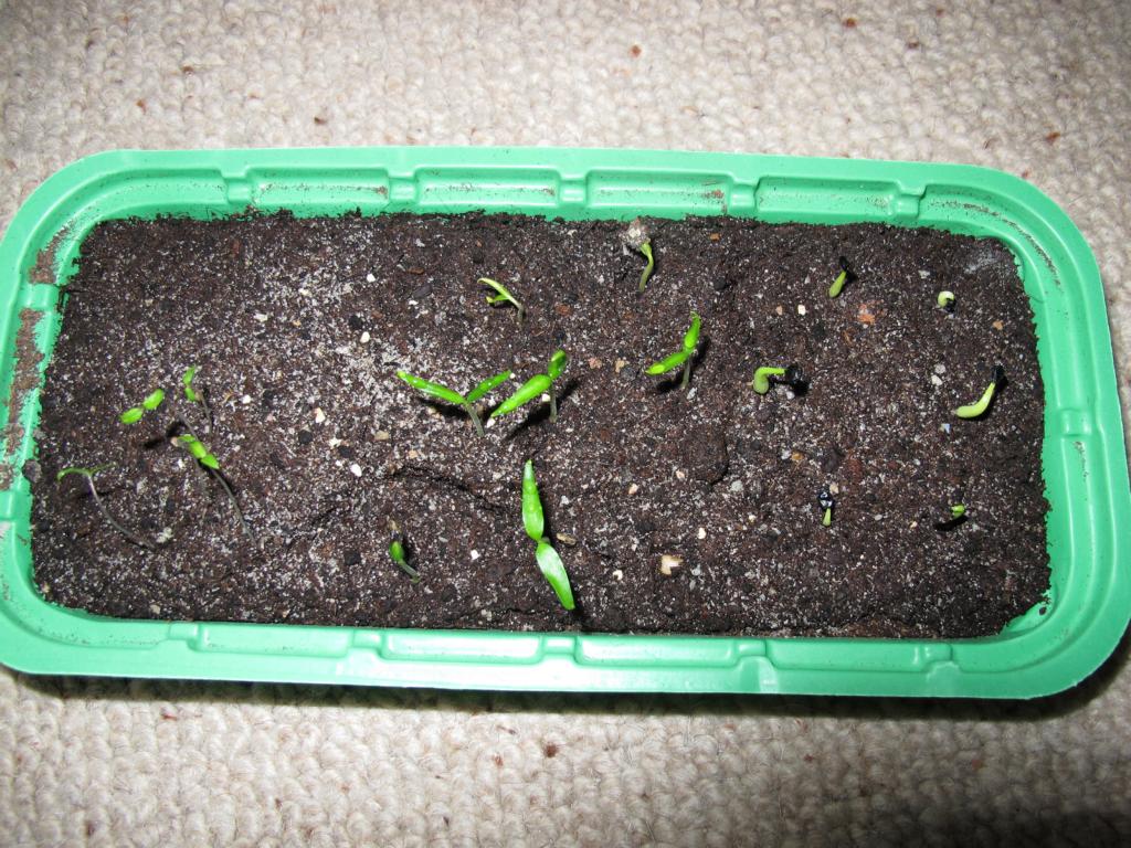 alle 5 Lampionblumen keimen, sind aber noch nicht über der Erde