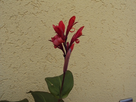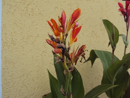 meine Canna mit grünen Blättern und weißem Rand blüht jetzt auch