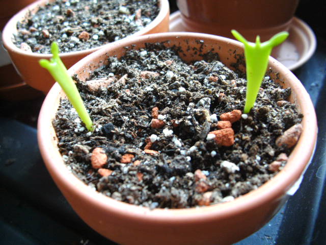 Außerdem scheinen gerade auch zwei keimlinge die bis jetzt fast mehr als eine Woche das Wachstum abgestellt hatten, doch was zu werden. Die hatten nur die Wurzel rausgeschoben und weiter nix gemacht. Heute hab ich gesehen, dass sie sich nun doch aufgerichtet haben und wachsen also komm ich vl auf 5 ganz gut gekeimte Samen