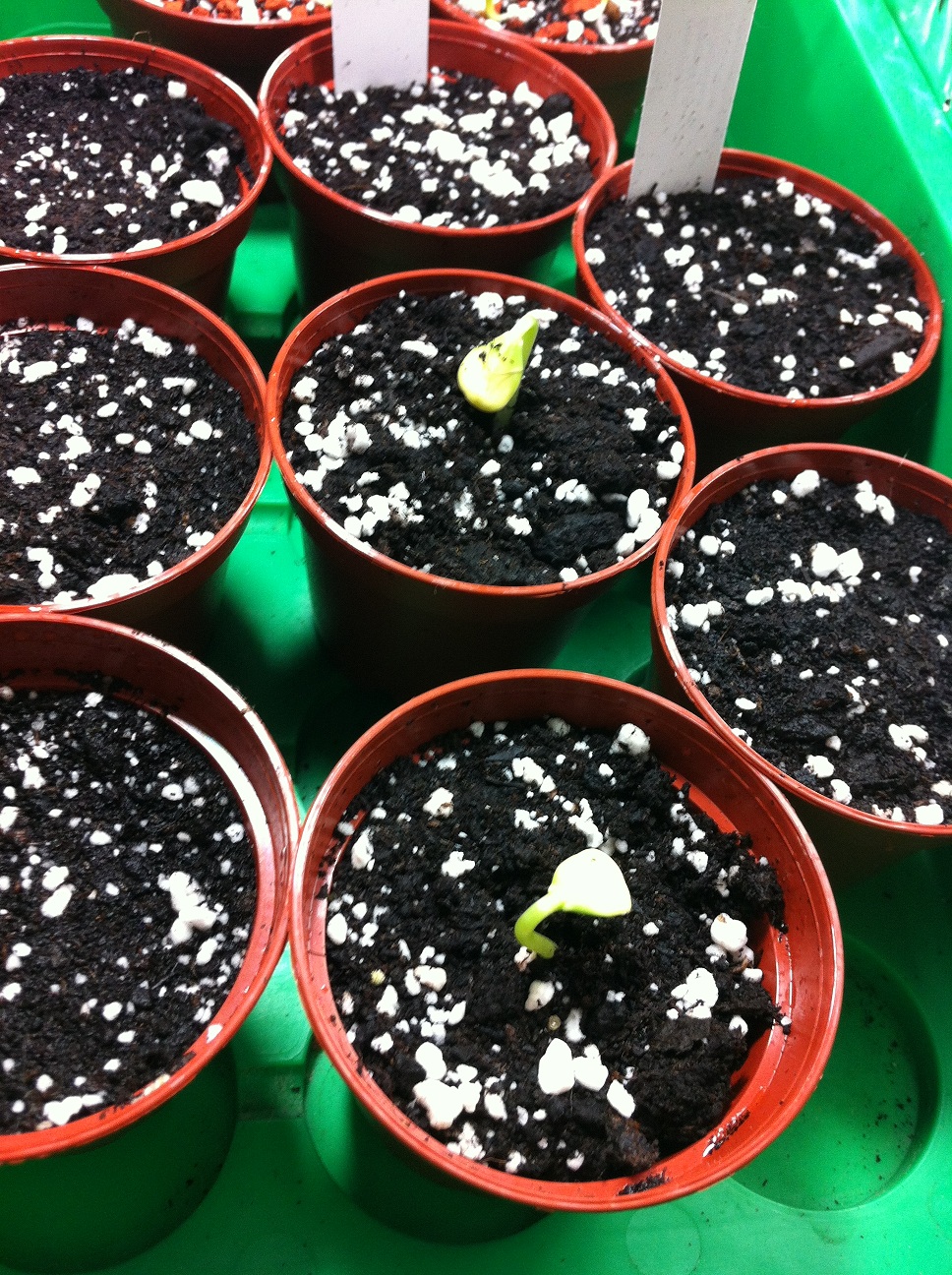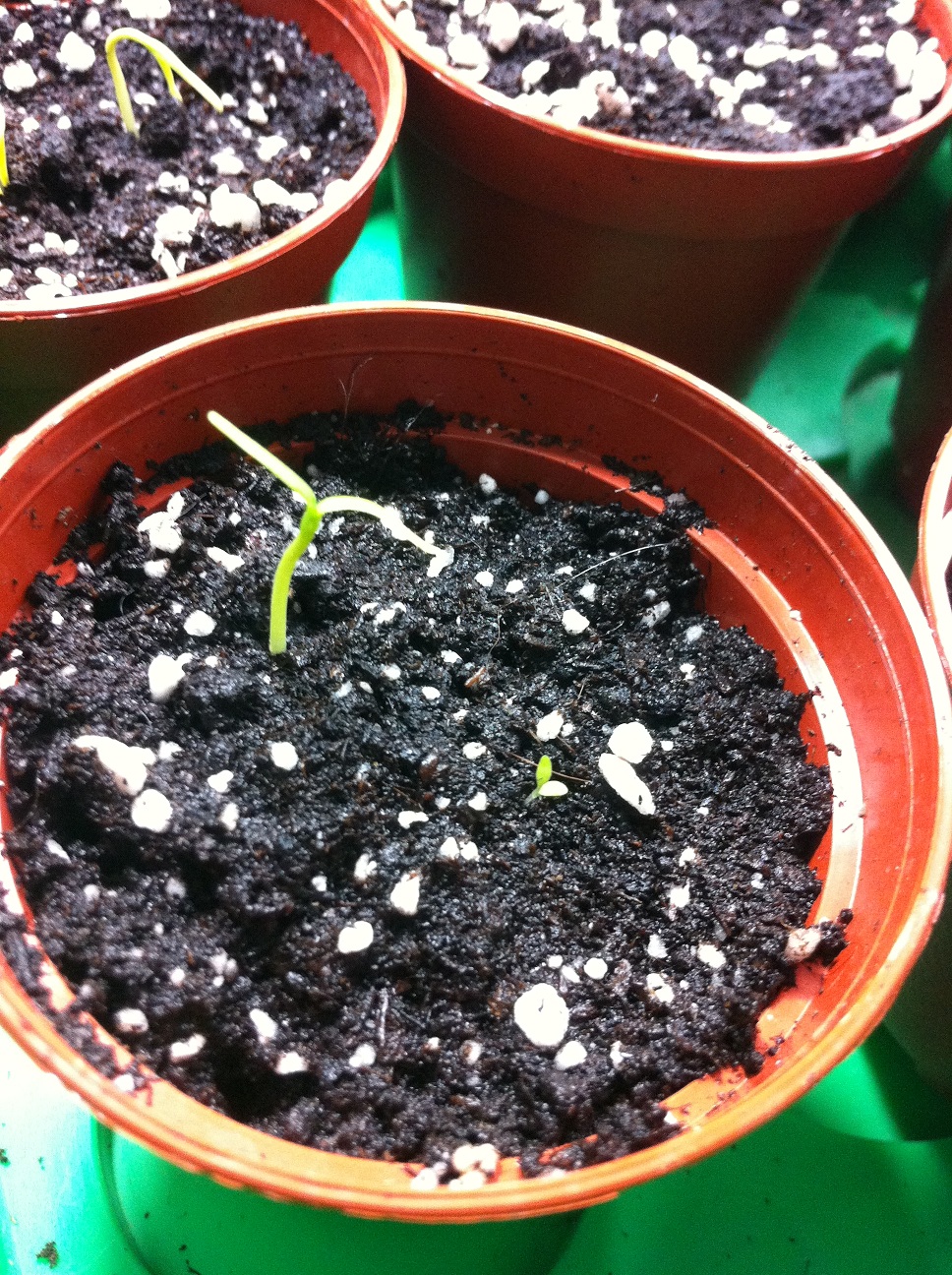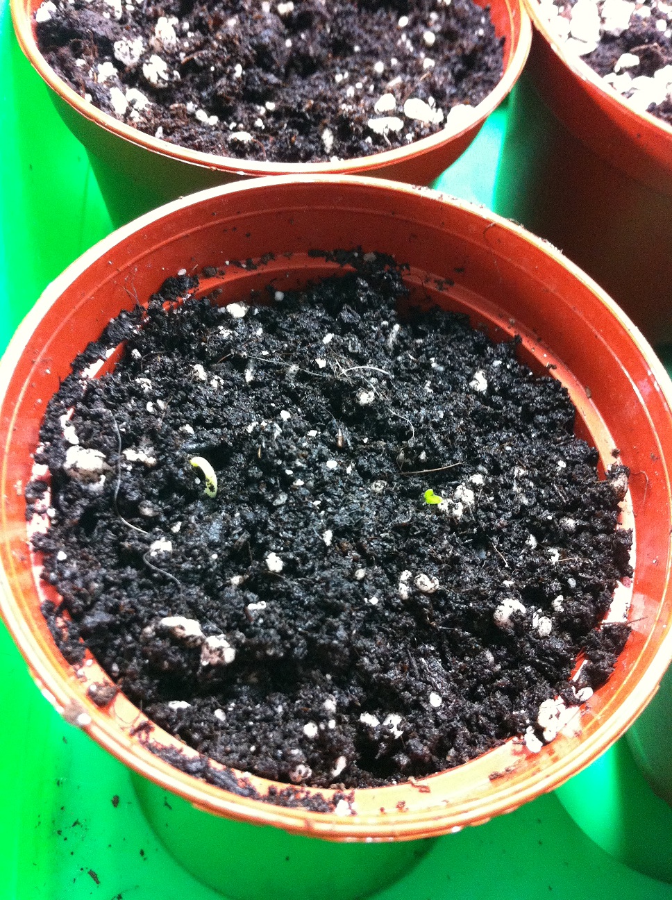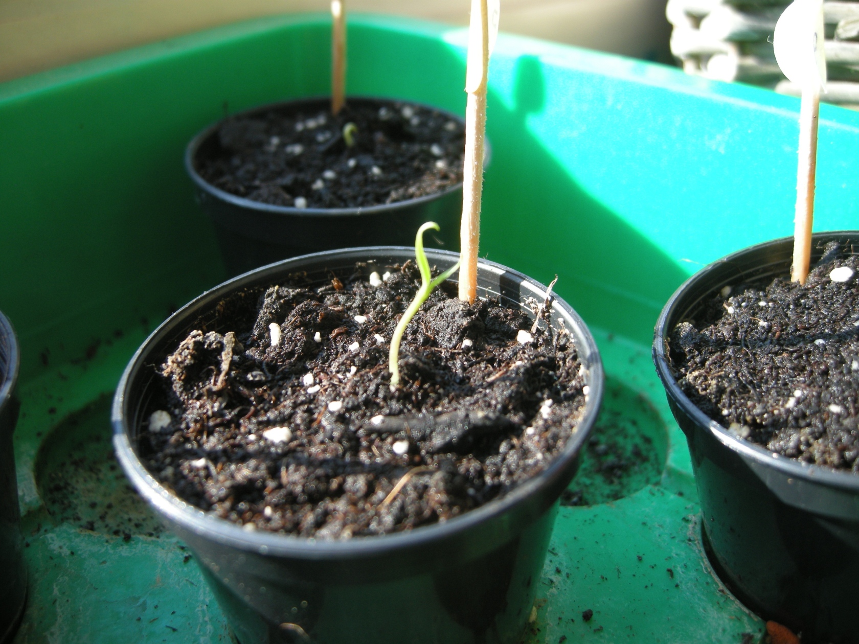 Da bin ich mal 2,5 Tage nicht zu Hause und zack - alle 5 Paprikas stecken nun ihre Köpfchen aus der Erde!
