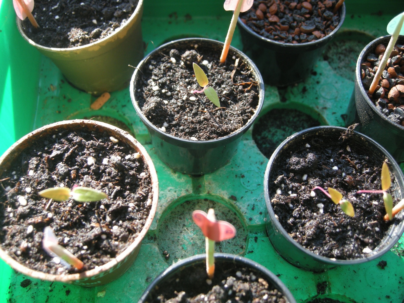 Und wegen den Stapelias, der eine Samen will immer noch nicht keimen, aber dafür sieht es so aus, als könnte der kleine mit der vertrockneten Keimspitze es schaffen. Und kann es sein, dass die bei den zwei kleine Spitzen oben weiterwachsen???