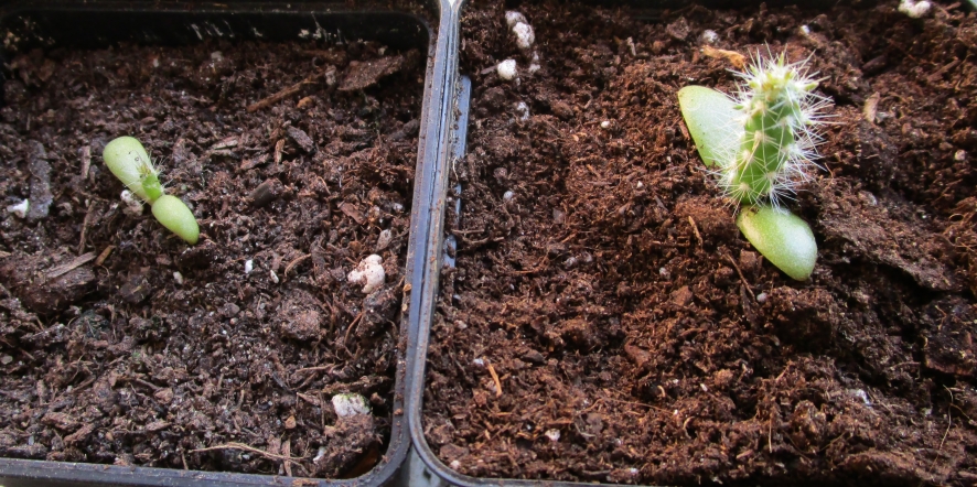 Und dann kam da doch plötzlich völlig unverhofft noch eine zweite Opuntie zum Vorschein. An die linke hatte ich schon längst nicht mehr geglaubt. Im November hab ich die Erde für die Aussaat von Mammutbäumen wiederverwendet, dabei ist der eine Samen wohl untergegangen. Die kleine kam vor kurzem als Dunkelkeimer zur Welt!