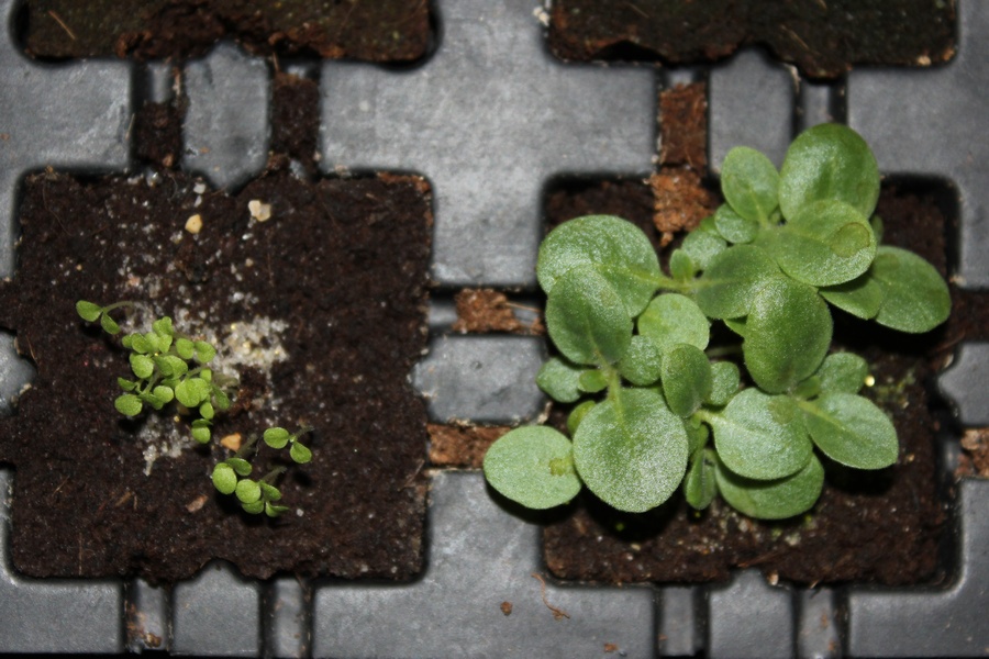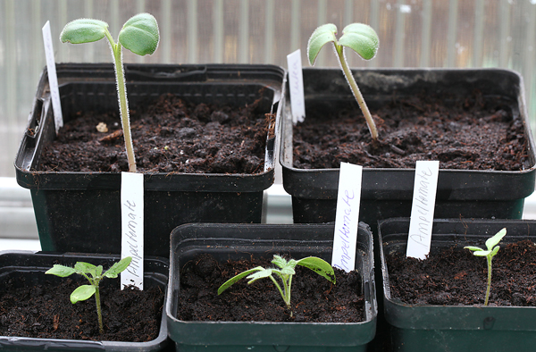 Das nun überschüssige Substrat hab ich gaaanz vorsichtig um die winzigen Nicotianas verteilt, so sitzen die nun ein bißchen tiefer.