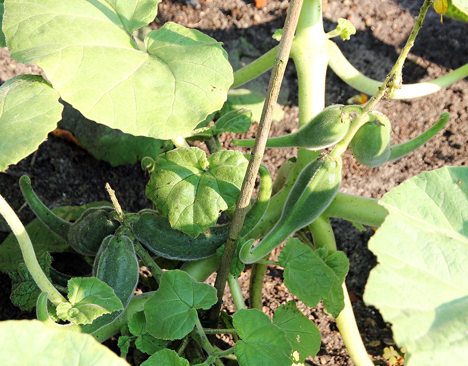 Von meinen drei Ibicellas stehen zwei in Töpfen. Eigentlich sind sie ganz okay, haben auch Früchte angesetzt, aber mit meinem Freiland-Einhorn können sie nicht mithalten. Vermessen habe ich die Pflanze noch nicht, und sie steht auch nicht bei mir, sondern in Opas Garten, der früher als Gemüsegarten diente und stets für mindestens ein zufriedenstellendes Wachstum sorgte. Darauf war mal wieder Verlaß! Die Pflanze hat sich verzweigt und trägt reichlich Früchte. Auf dem ersten Bild ist versehentlich mein Schuh zu sehen, aber als Maßstab ist das vielleicht gar nicht so schlecht.