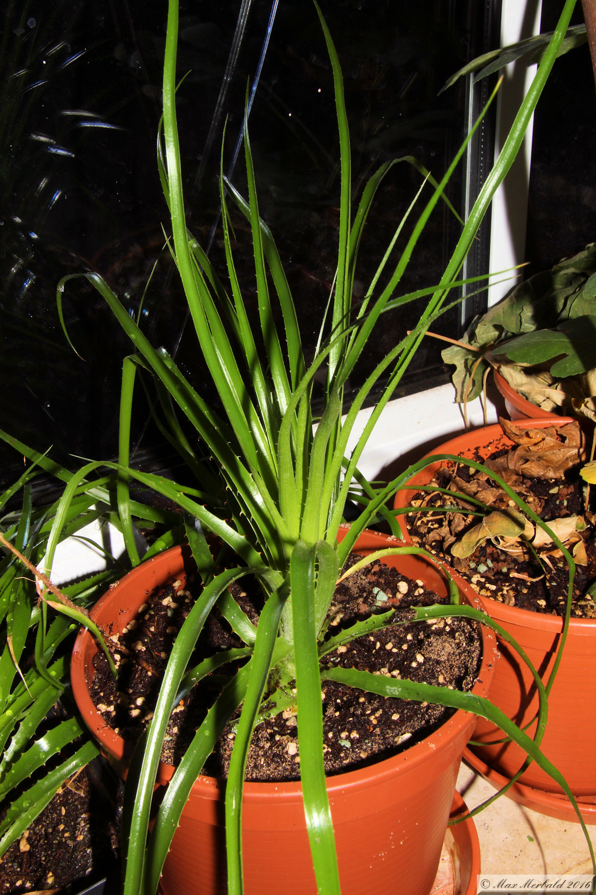 hier mal ein Bild der größten meiner Puyas, ist seit Abschluss des Bewerbs wieder ordentlich gewachsen. Die hab ich auch umgetopft gehabt, und inzwischen ist sie bei meiner Mutter als Geburtstagsgeschenk gelandet. Meine Mutter hatte sich schon eine ausbedungen, als sie gehört hatte, dass ich beim Aussaatwettbewerb der Puyas mitmache. Eine weitere ist bei meiner Schwägerin gelandet, die sich auch immer über Pflanzen freut, und jetzt hab ich noch 3, und das passt schon. Jetzt können wir schauen, bei wem sie am besten gedeihen.