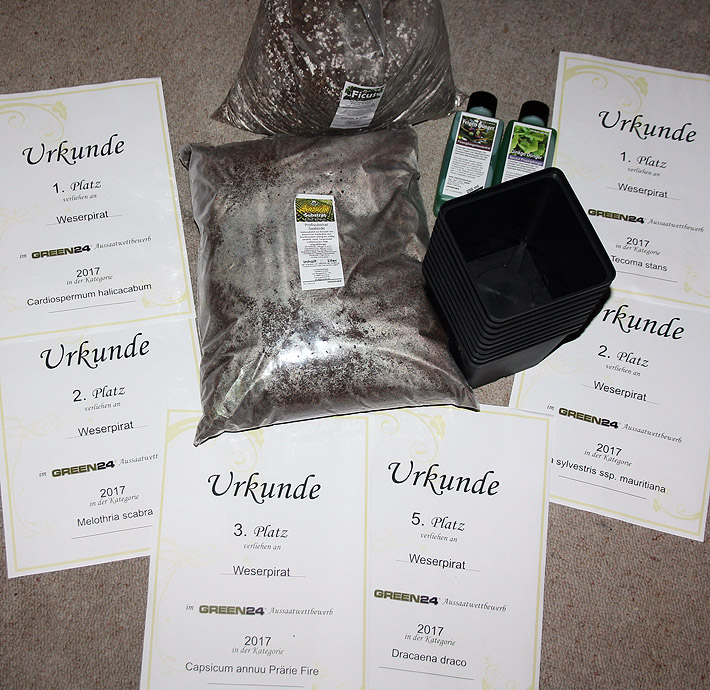 Habe mich sehr darüber gefreut, vielen Dank an alle, die am Wettbewerb beteiligt sind! Macht unbedingt weiter so! Ursprünglich hatte ich mit dem Gedanken gespielt, im nächsten Jahr mal zu pausieren - da ich noch ganz andere Sachen ausgesät habe... - aber angesichts des tollen Aussaatsubstrats könnte es sein, daß ich diese Entscheidung doch noch einmal revidiere. Nun ja, dafür bleibt ja noch etwas Zeit.