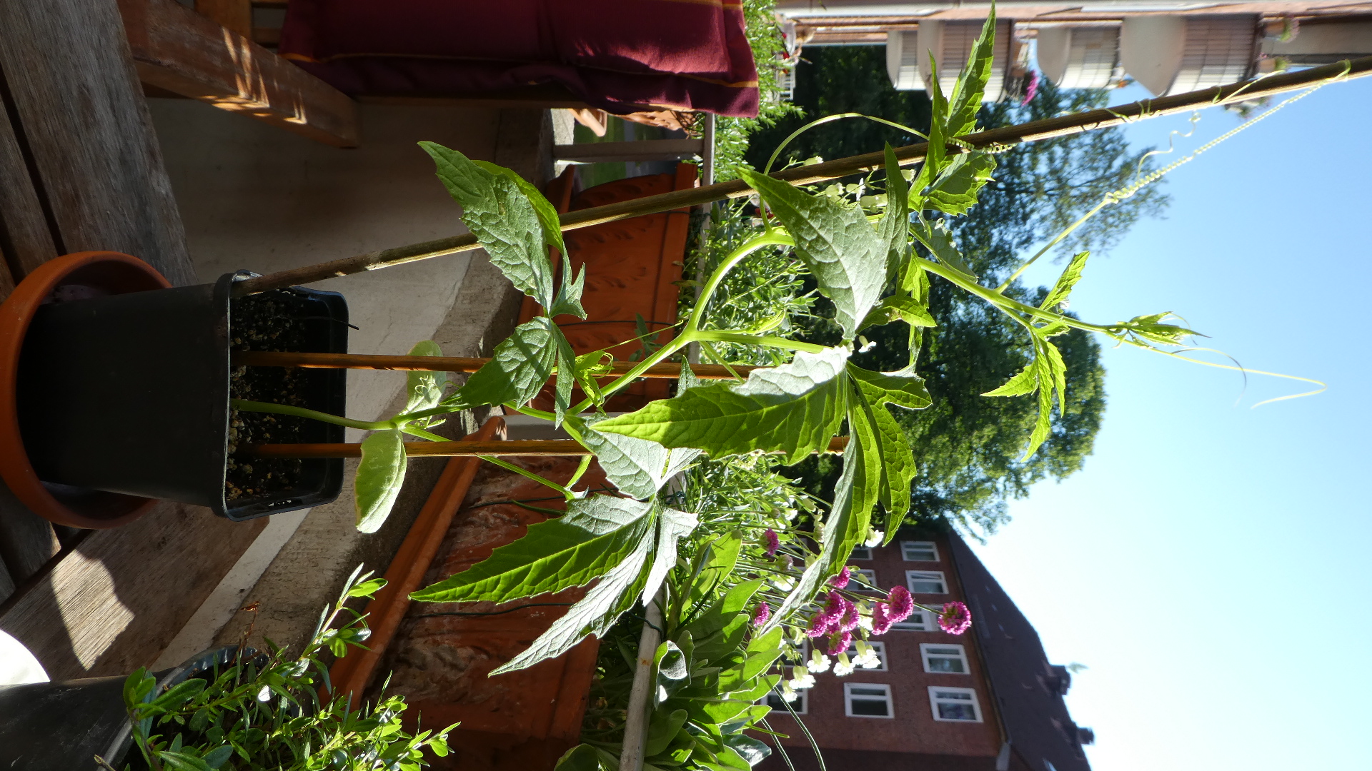 Nein, ich hatte erst mal nur 3 ausgesät, weil ich in sehr wenig Platz habe. Gekeimt sind alle drei, aber zwei sind inzwischen in den Schrebergarten umgezogen. Dieses Exemplar steht auf dem Balkon. Vor einer guten Woche habe ich dann den Rest ausgesät und werde die Keimlinge wohl verschenken.