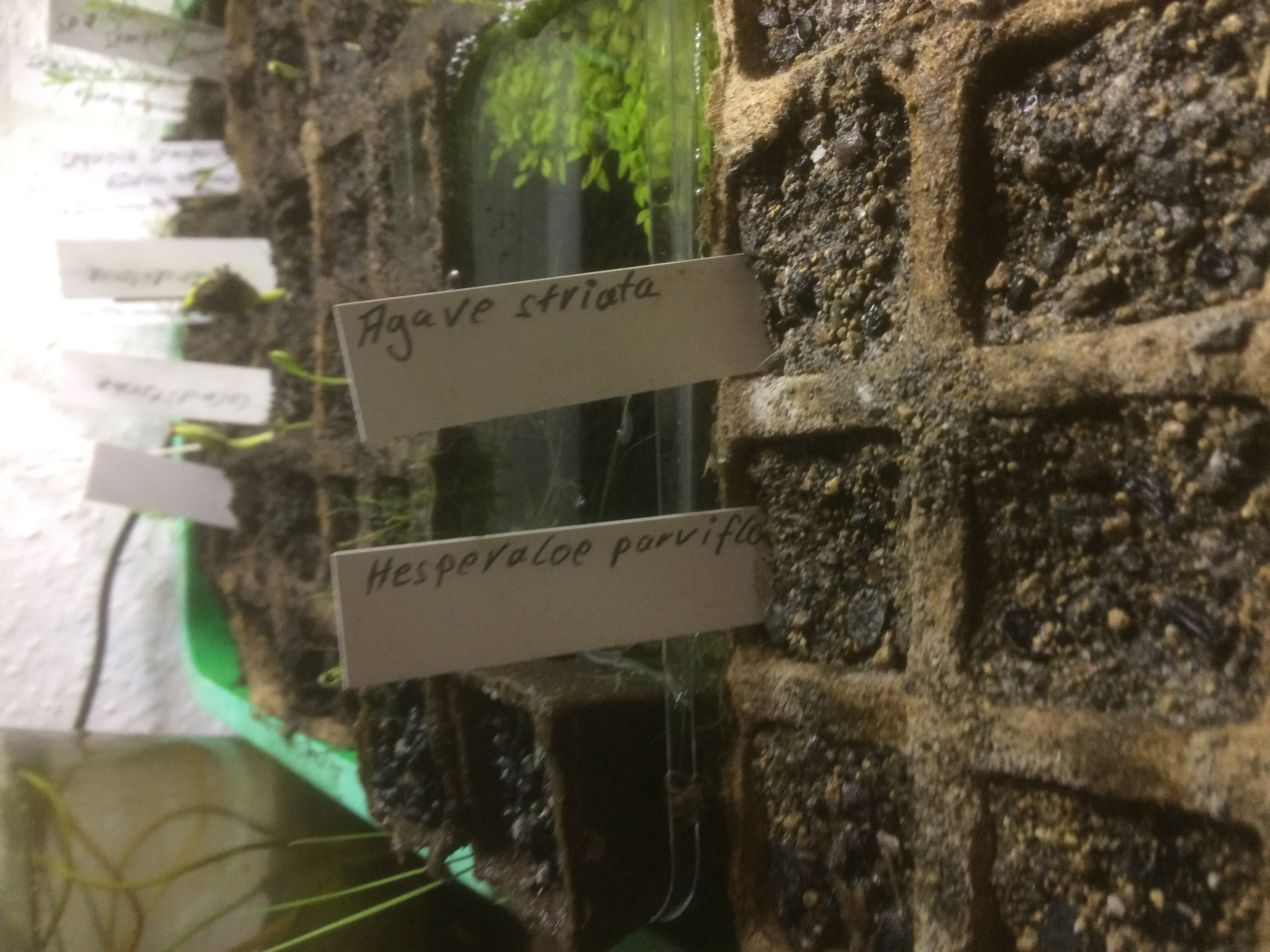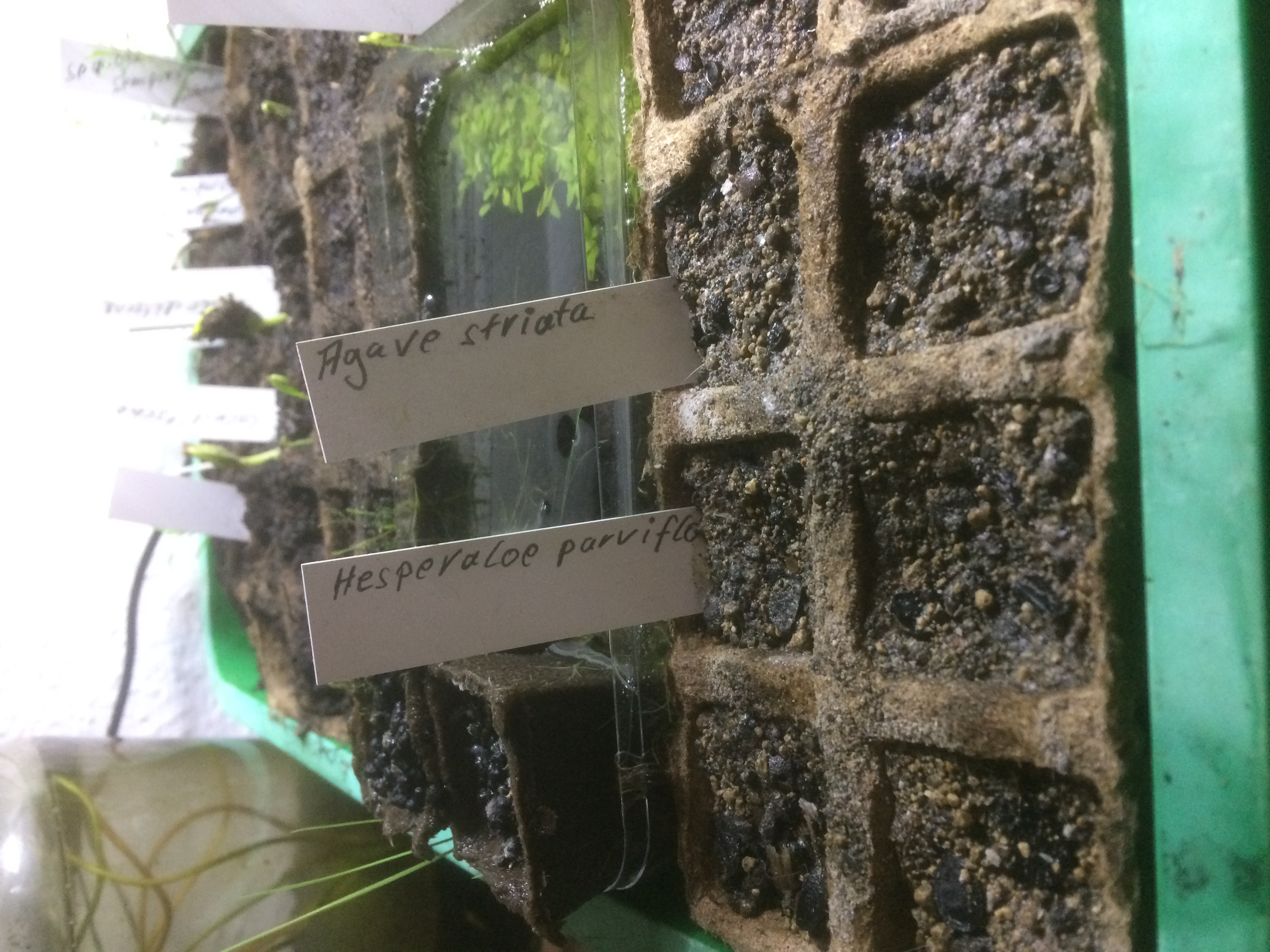 Hier sind mal meine Doktorchen … bei den Ulmen und Opuntien bin ich mir nicht sicher, ob ich was gesehen habe, bei der Hesperaloe sehe ich nichts, was nur im Entferntesten wie "Keimung" aussieht. Immer wieder spannend