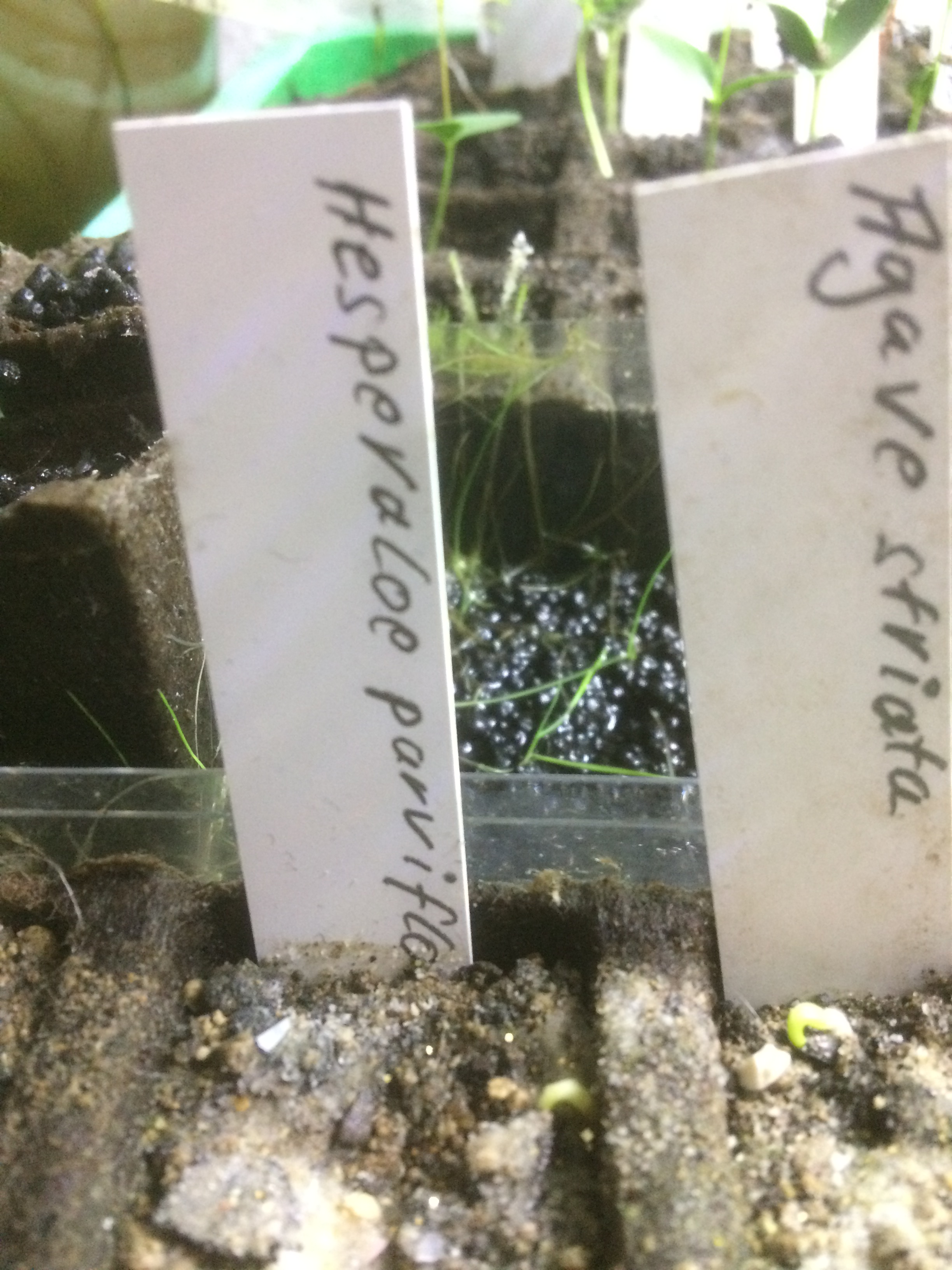 Hab heute entdeckt, dass bei mir auch zwei Hesperaloe keimen. Ich freue mich!