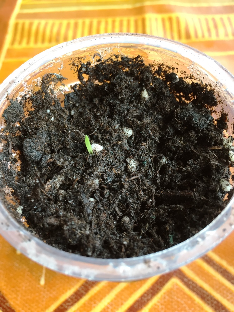 Wir haben eine Terrasse, da möchte ich sie im Kübel halten, falls sich der Samen noch entschließt zu keimen.