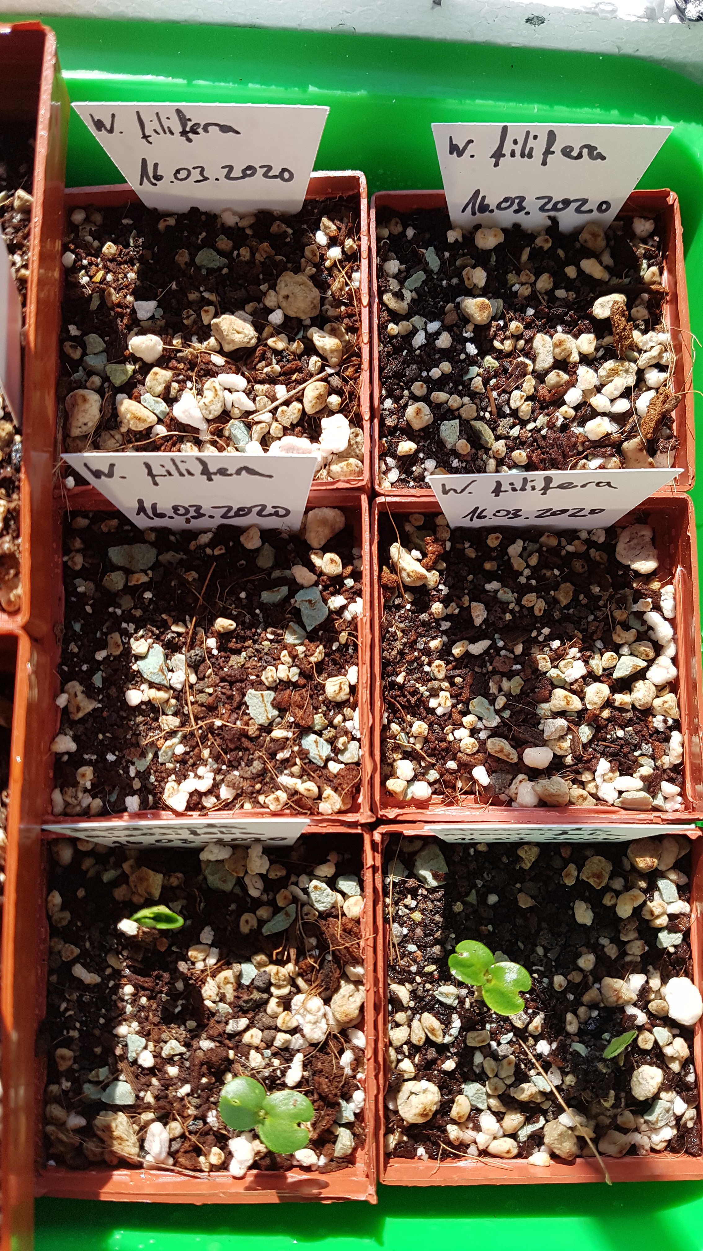 Und wenn ich mich nicht irre, waren es insgesamt 10 Leuchtenbergia Samen (habe insgesamt 5 kleine Töpfchen mit je 2 Samen bestückt). Aber bei den Washingtonia Samen bin ich mir nicht mehr sicher ... waren es auch 10?