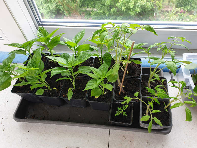 Übrigens hab ich festgestellt, dass die Eimerchen von Snacktomaten umgedreht hervorragend auf manche Pflanztöpfchen passen. Zählt das jetzt auch als Gewächshaus?