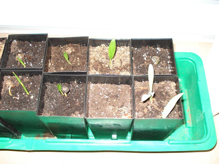 Hallo,schade das ich mich erst vor ner Woche angemeldet habe.Sonst hätte ich wohl am Aussaatwettbewerb mitgemacht.Naja,vieleicht nächstes Jahr.Ich habe dieses Jahr im März Samen von Trachycarpus fortunei und Phoenix Canariensis ausgesät.Und ich hatte bis jetzt doch ein klein wenig Erfolg.