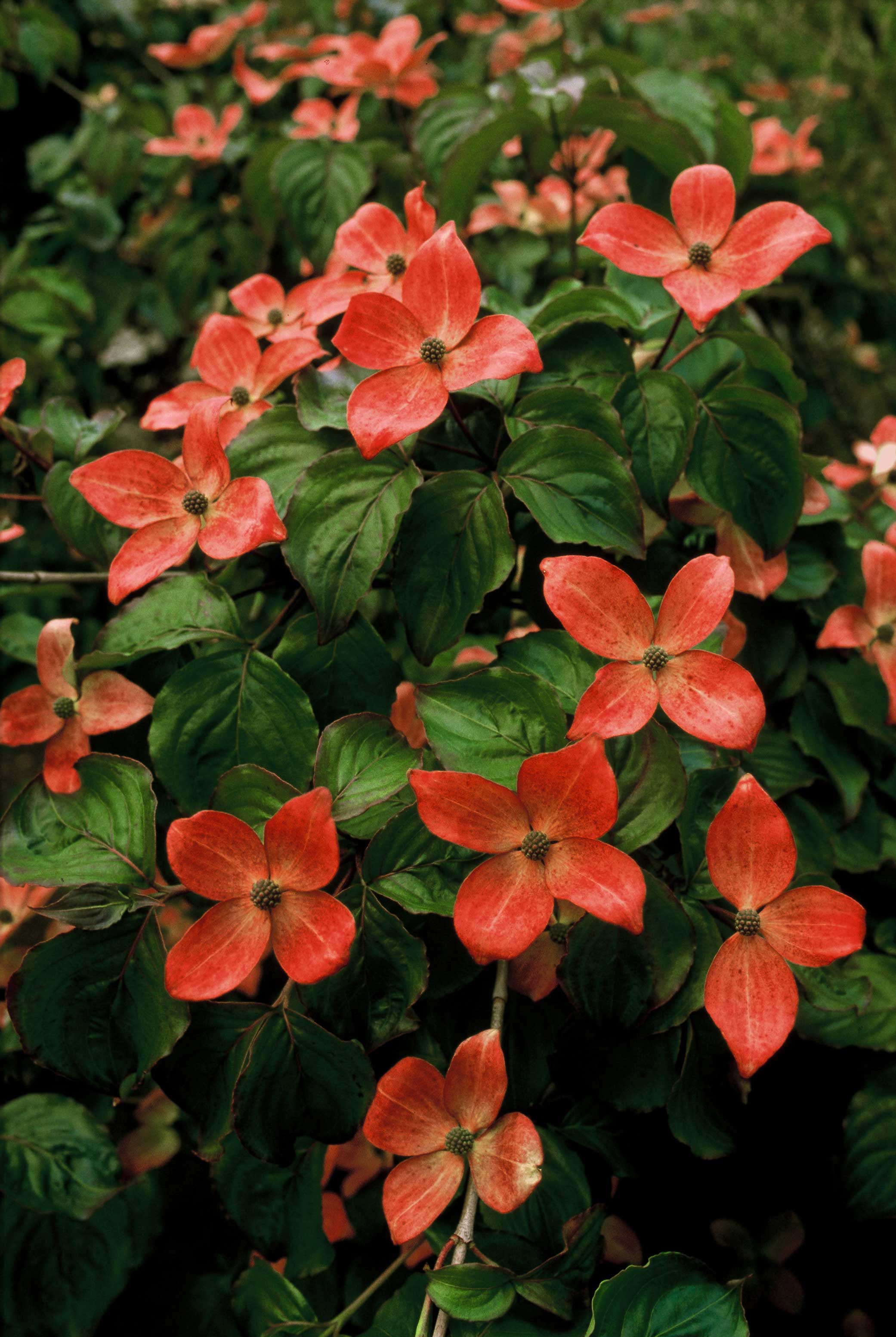 Nach der Rhododendronblüte ist das Feuerwerk der Farben in den Gärten längst nicht vorbei, denn auch danach kann es blütenreich weitergehen. Besonders schön sind einige Hartriegel (Cornus). Diese Gattung präsentiert sich jetzt eindrucksvoll mit Pflanzenschätzen, die einen Ehrenplatz im Garten verdient haben. Das sind vor allem die ursprünglich in Nordamerika heimischen, reich blühenden Blumen-Hartriegel (Cornus-florida-Sorten) und die etwas später im Juni blühenden Japanischen Blumen-Hartriegel (Cornus-kousa-Sorten). Diese Ziergehölze sind etwas ganz Besonderes: Ihre eigentlichen Blüten sind klein und unscheinbar, sie werden aber von auffallenden, großen Hochblättern umgeben. Diese Blätter sind nicht grün, sondern je nach Sorte weiß, rosafarben oder rot. Sie gehören aus botanischer Sicht nicht zur Blüte, sondern sind jeweils zu viert zusammenstehende, farblich veränderte Blätter, die die kleinen Blüten anfangs schützend umgeben und dann, wenn sie sich entfaltet haben, mit ihrer auffallenden Farbe Bestäuber anlocken.