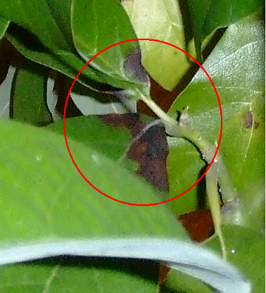 Noch etwas. Das Foto im Wohnzimmer mit den Lampen ist nicht mehr. Der Baum steht nun ganz woanders. ICh dachte, dass vielleicht die Lampen schuld an der Katastrophe sein könnten, da die Flecken sich in den Blätter anfieng auszubreiten, die direkt über den Lampen liegen. Aber, obwohl ich die Lampen kaum angemacht hatte in letzter ZEit, schien die Sache immer schlimmer zu werden.