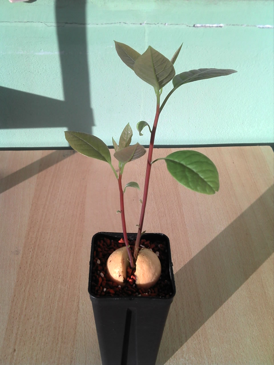 Letzten Juli hatte ich so viele Avokados, dass ich mir sicher war, welche rauszuschmeißen, wenns auch nur eine ist, hab es aber nicht übers Herz gebracht . Zum Umtopfen hatte ich keine Lust und zum Rausschmeisen auch nicht . Dann hab ich die eine einfach in die Ecke des Fensters geschoben und hab mir gedacht: Mach was du willst. Beim nächsten Umtopfen einer anderen Pflanze hab ich ihr dann einfach Erde ins Glas gedrückt. Ich hab mich nicht wirklich um sie gekümmert, einfach Wasser manchmal fast bis zum Überlaufen reingegossen. Irgendwann hab ich mir dann gedacht: Wer so einen Lebenswillen hat, hat auch einen richtigen Topf verdient:
