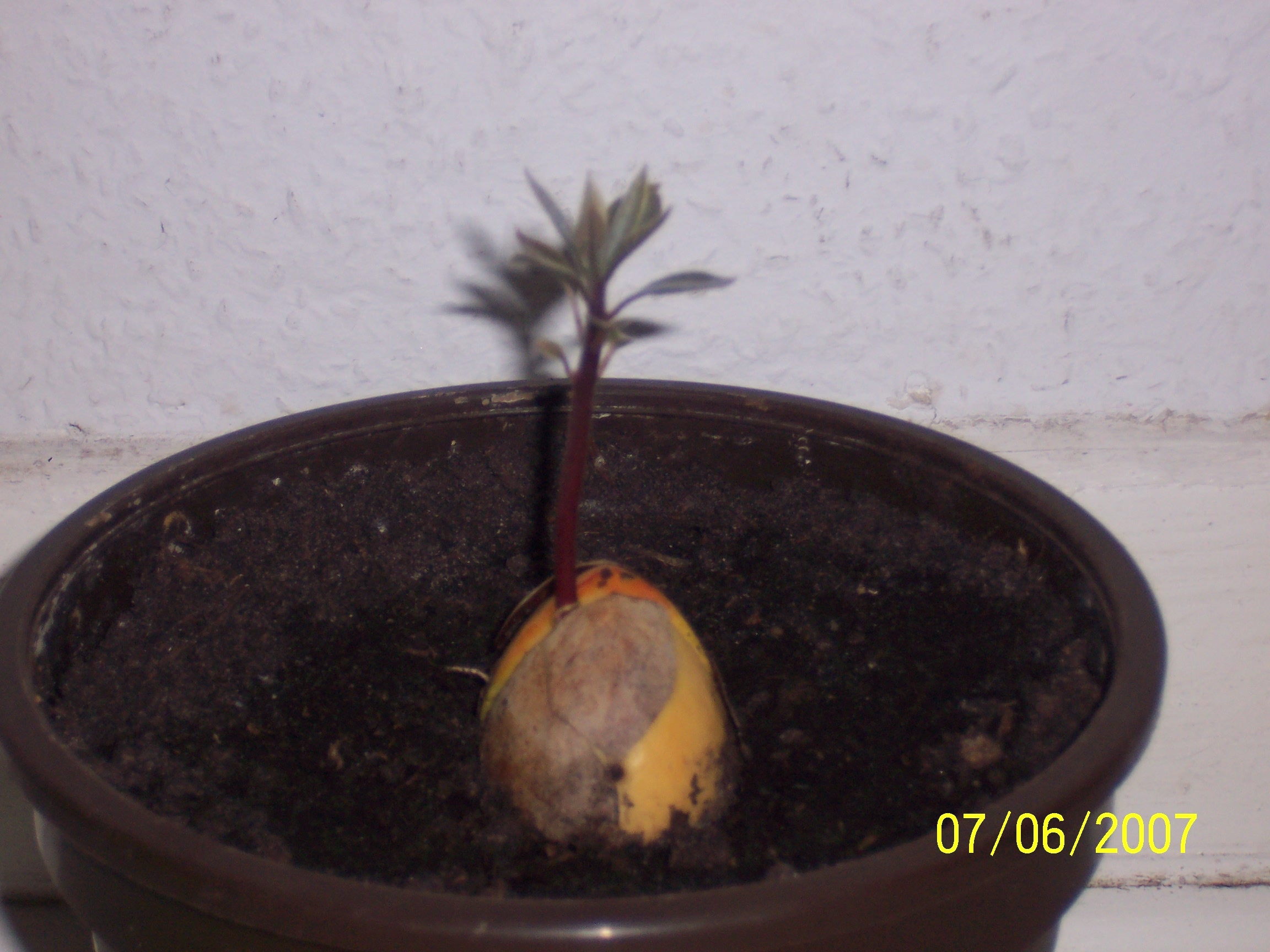 ich habe den Kern auch gleich in die Erde zum Teil gelegt,
