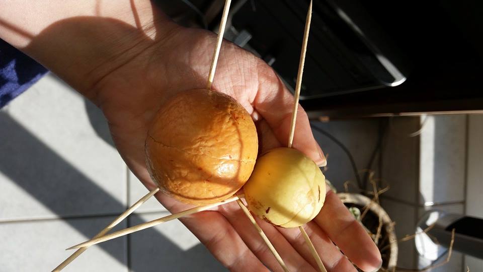 ich scheine wohl ein ziemlicher Glückpilz zu sein, denn erst am 2.September habe ich den ersten versuch gestartet und zwar den Avokadokern mit der Zahnstochermethode zum Keimen zu bringen. Und schon nach nur 1 1/2 Wochen bekam mein Baby schon einen Knacks und eine Woche später war sogar schon der erste Wurzelansatz zu sehen.... Obwohl ich eher mit einer Keimzeit von mindestens 1,5 Monaten gerrechnet hatte.... der Zweite Kern den ich zur gleichen Zeit zum ersten mit der Zahnstochermethode ins Wasser gehangen habe, bekommt wohl auch in wenigen Tagen den ersten Wurzelansatz