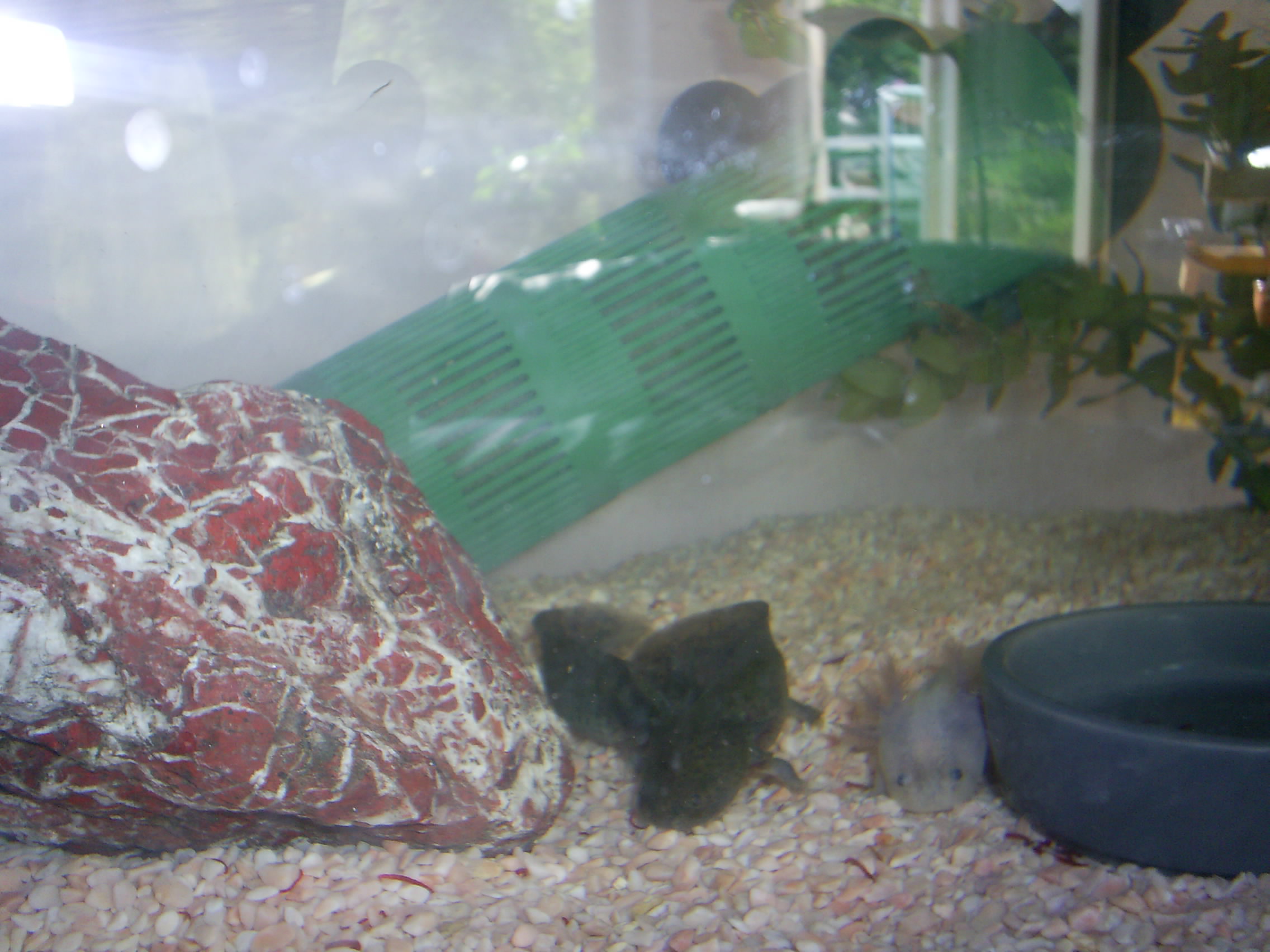 eigentlich sollte es ein Miniaquarium mit Guppys werden,......da sprangen die Axolotln hinterm Stein hervor und riefen.......nimm mich!!!!!