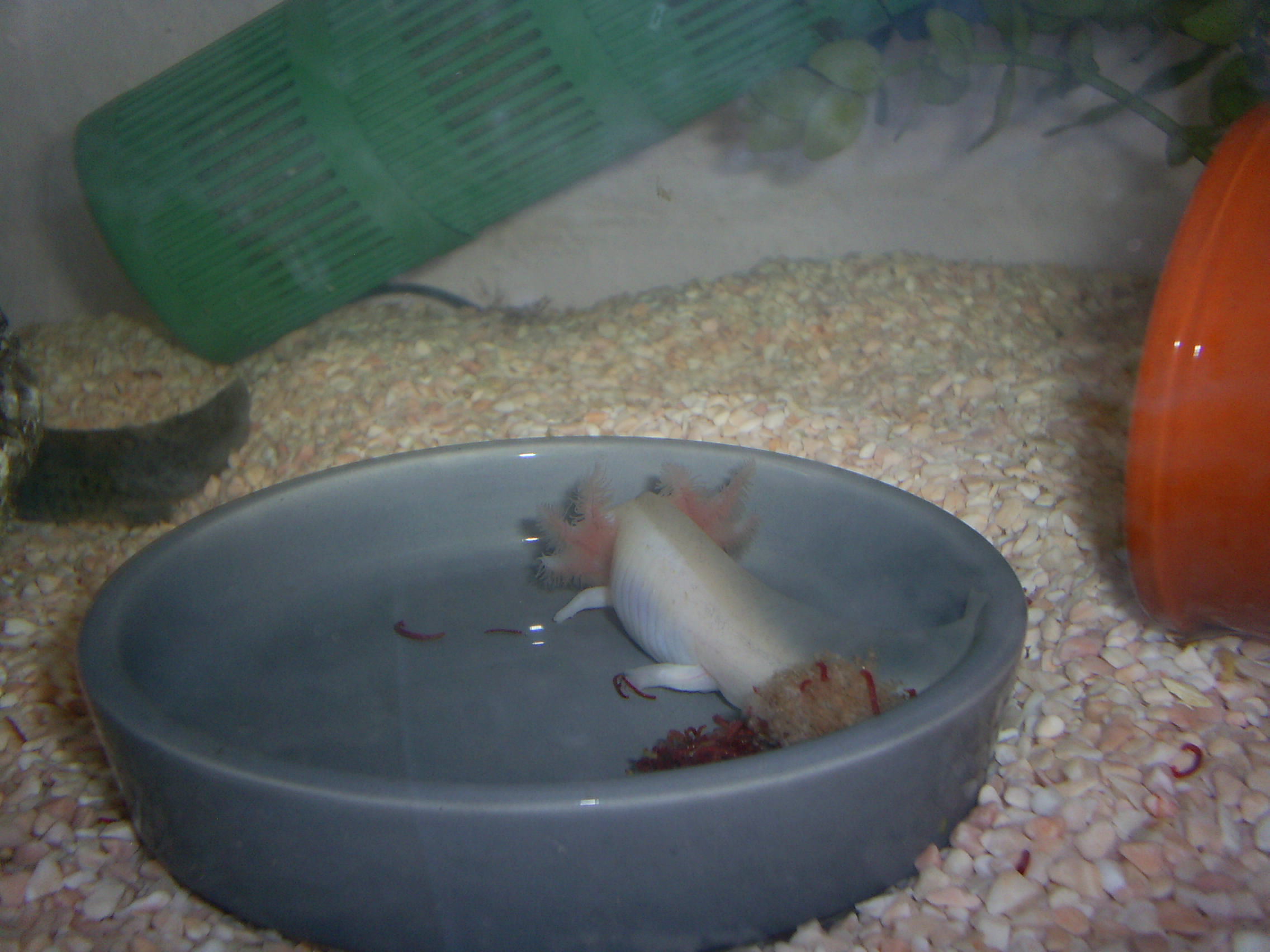 ihr habt VIEL zu wenige Pflanzen für Axolotl. Sie mögen es dunkel und verwachsen....