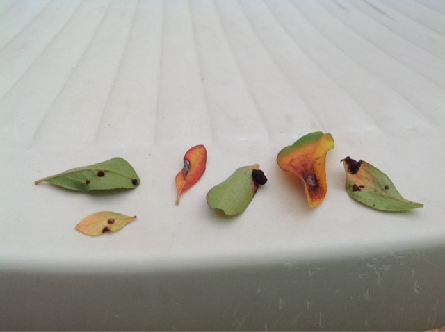 Vereinzelt gelbe Blätter, schwarze Punkte auf Blattoberseite bzw. schwarze