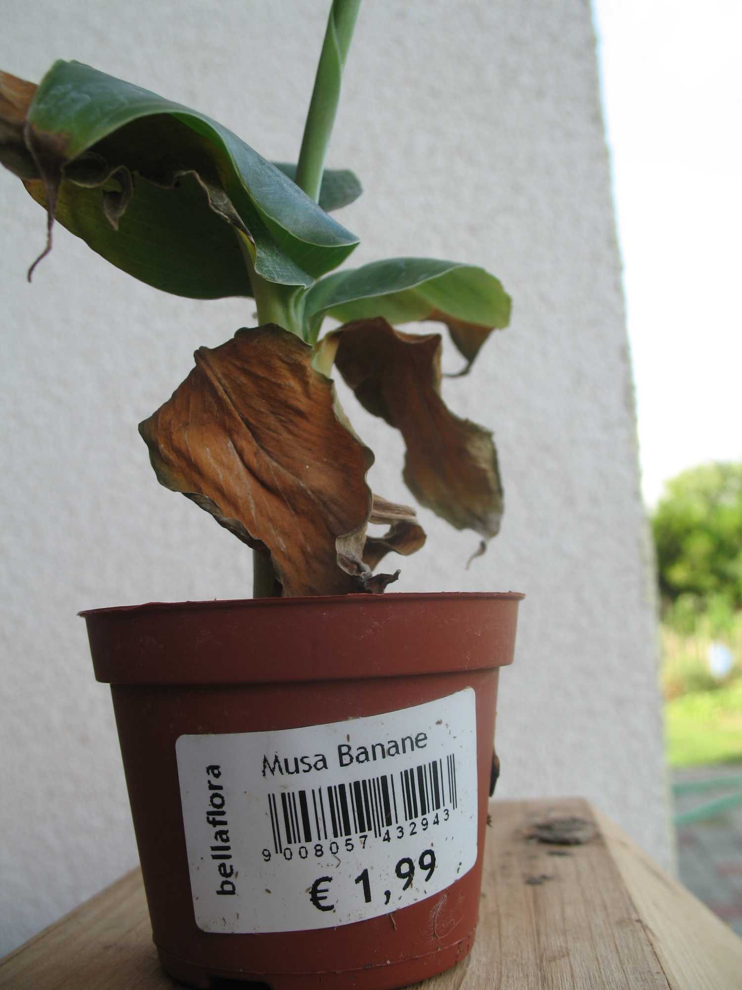 also habe gestern bei Bellaflora bei den Aktionen (statt um 1,99 un 0,50) eine kleine Banane gesehen und konnte Ihr nicht wiederstehen. Schaut so süß aus leider auch vernachlässigt bei der Pflege. Vielleicht kann ich es ja noch retten. (Ich glaube es sie es schafft)