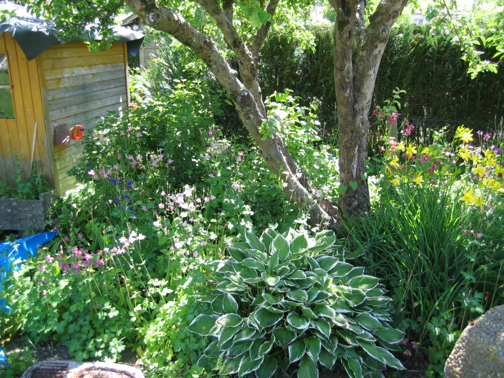 ich hab letztes Jahr ein großes, sehr ungepflegtes Beet unter unserem Apfelbaum aufgelöst, in dem Bärlauch, sehr viele Tulpen, Akeleien, Hosta und Fetthenne durcheinander wuchsen.