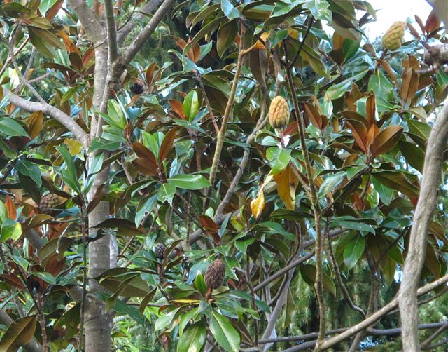 Genau, Gudrun, das ist sogar mit Sicherheit Magnolia grandiflora. Wegen des, für eine Magnolie ungewöhnlichen Fruchtstandes, wäre ich nicht darauf gekommen. Habe vielen Dank für die schnelle Antwort!