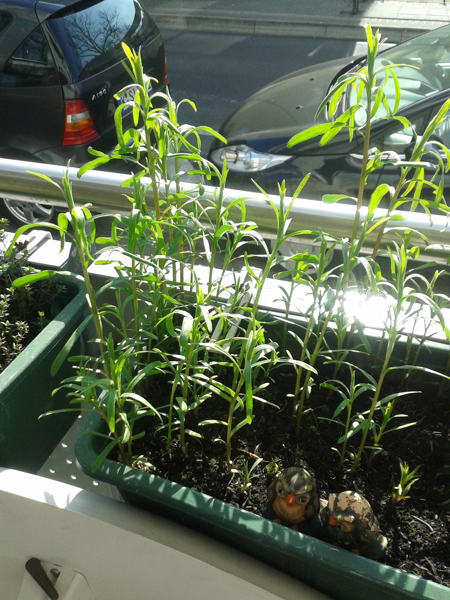 Estragon: Wächst wie verrückt neu. Denke hier sollte ich vielleicht eine Barriere in die Erde "einbauen", damit er sich nicht noch weiter ausbreitet?