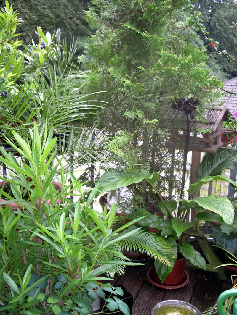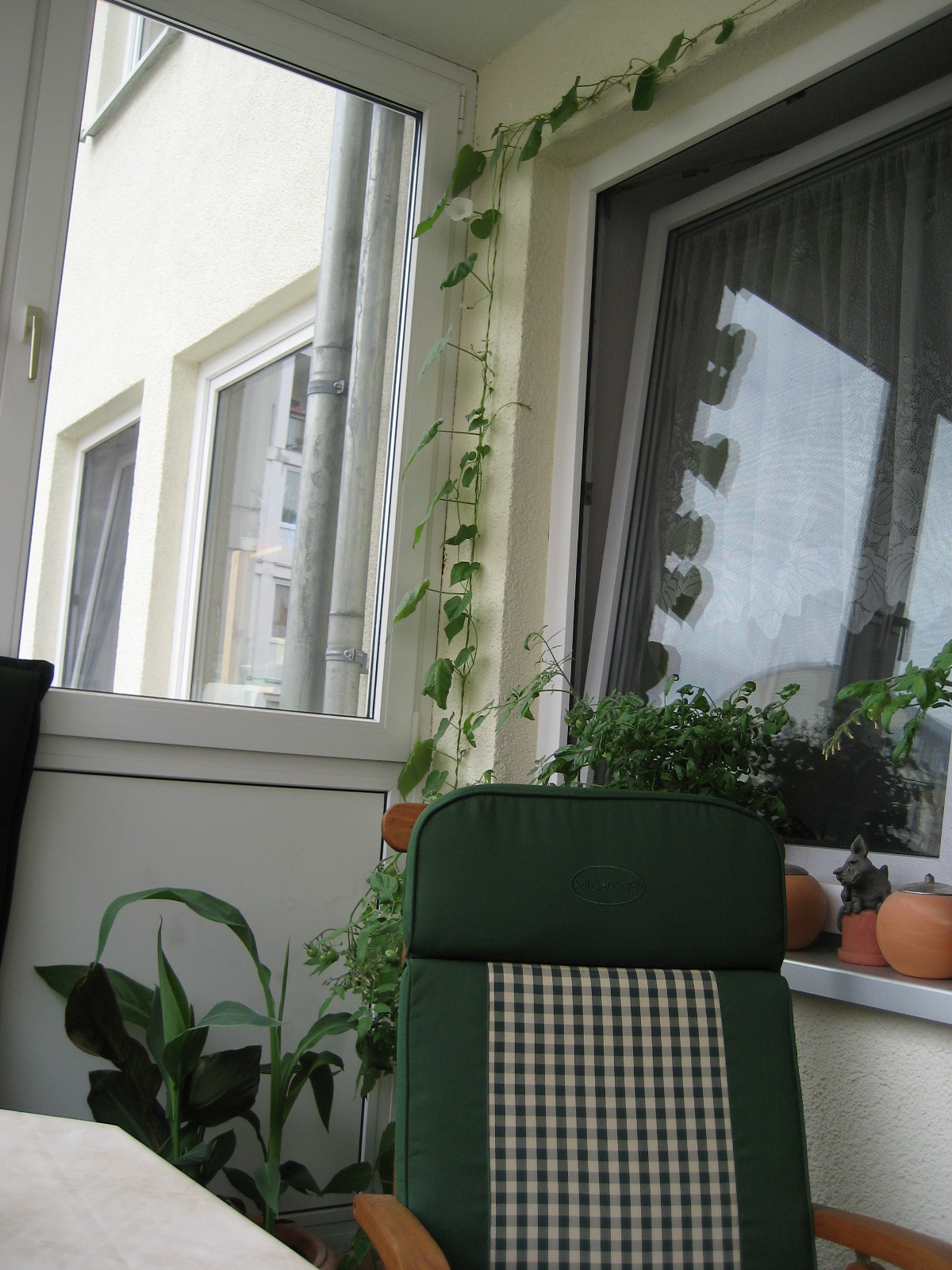 Dieses Jahr ist er extrem zugewuchert. Das liegt aber bestimmt nur daran, das ich nur 2 Tomatenpflanzen mehr hab, wie sonst . Und die Tomaten waren als Balkontomaten tituliert - und die werden ja eigentlich nicht so groß. Und eigentlich sollten sie auf der Fensterbank stehen, aber die wachsen mir dieses Jahr noch über den Kopf