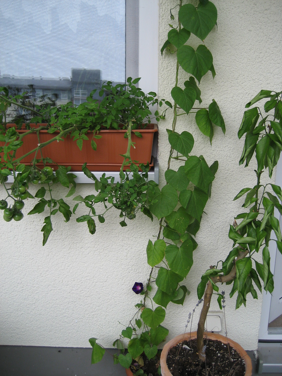 Dieses Jahr ist er extrem zugewuchert. Das liegt aber bestimmt nur daran, das ich nur 2 Tomatenpflanzen mehr hab, wie sonst . Und die Tomaten waren als Balkontomaten tituliert - und die werden ja eigentlich nicht so groß. Und eigentlich sollten sie auf der Fensterbank stehen, aber die wachsen mir dieses Jahr noch über den Kopf