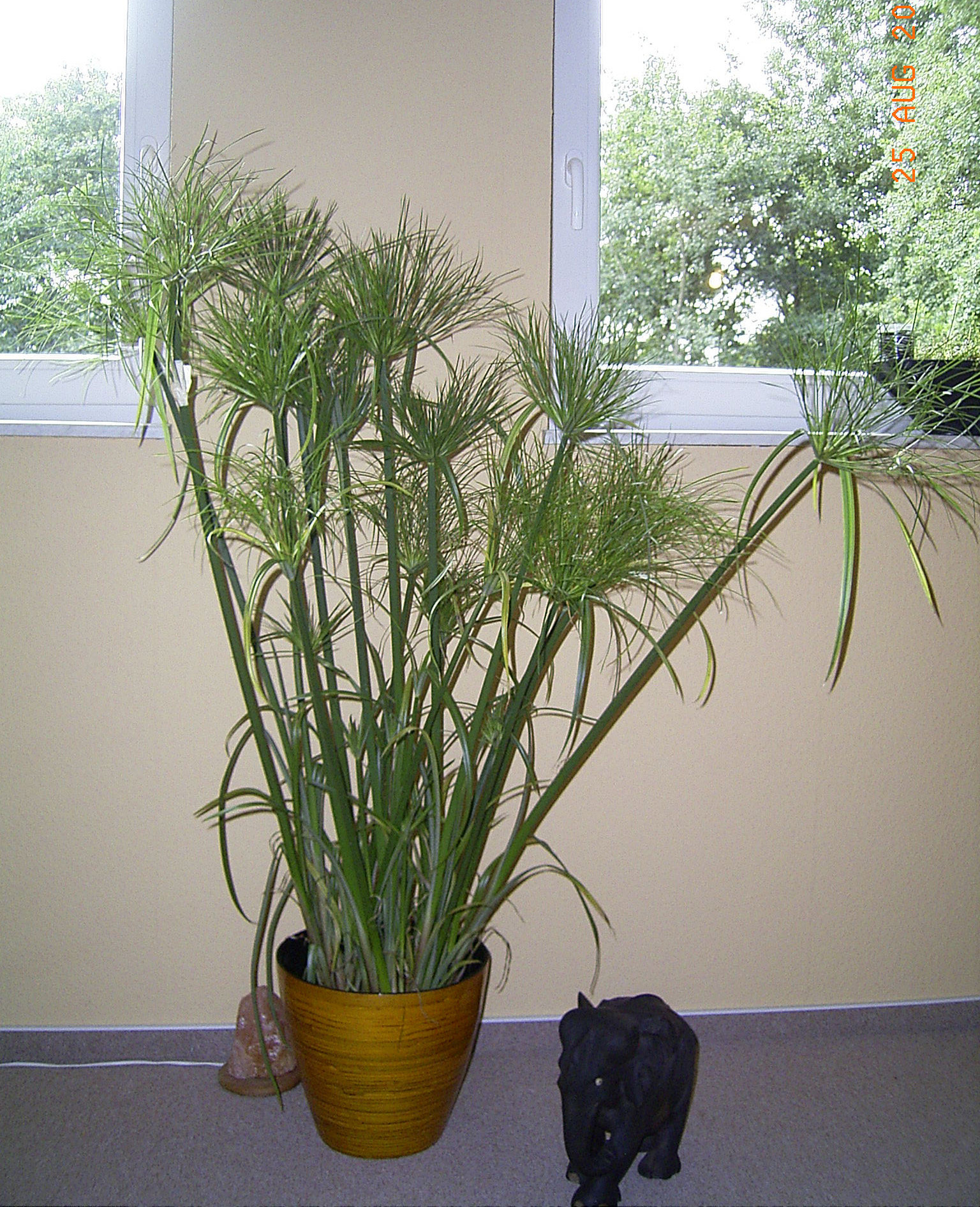 habe momentan eine schöne 1,20 m papyruspflanze stehen...die liebt es kalkfreies wasser on mass zu saufen und sogar in 1-2 cm wasser zu stehen und besprühen (bade-dunst) liebt sie auch...sonnenverträglich.