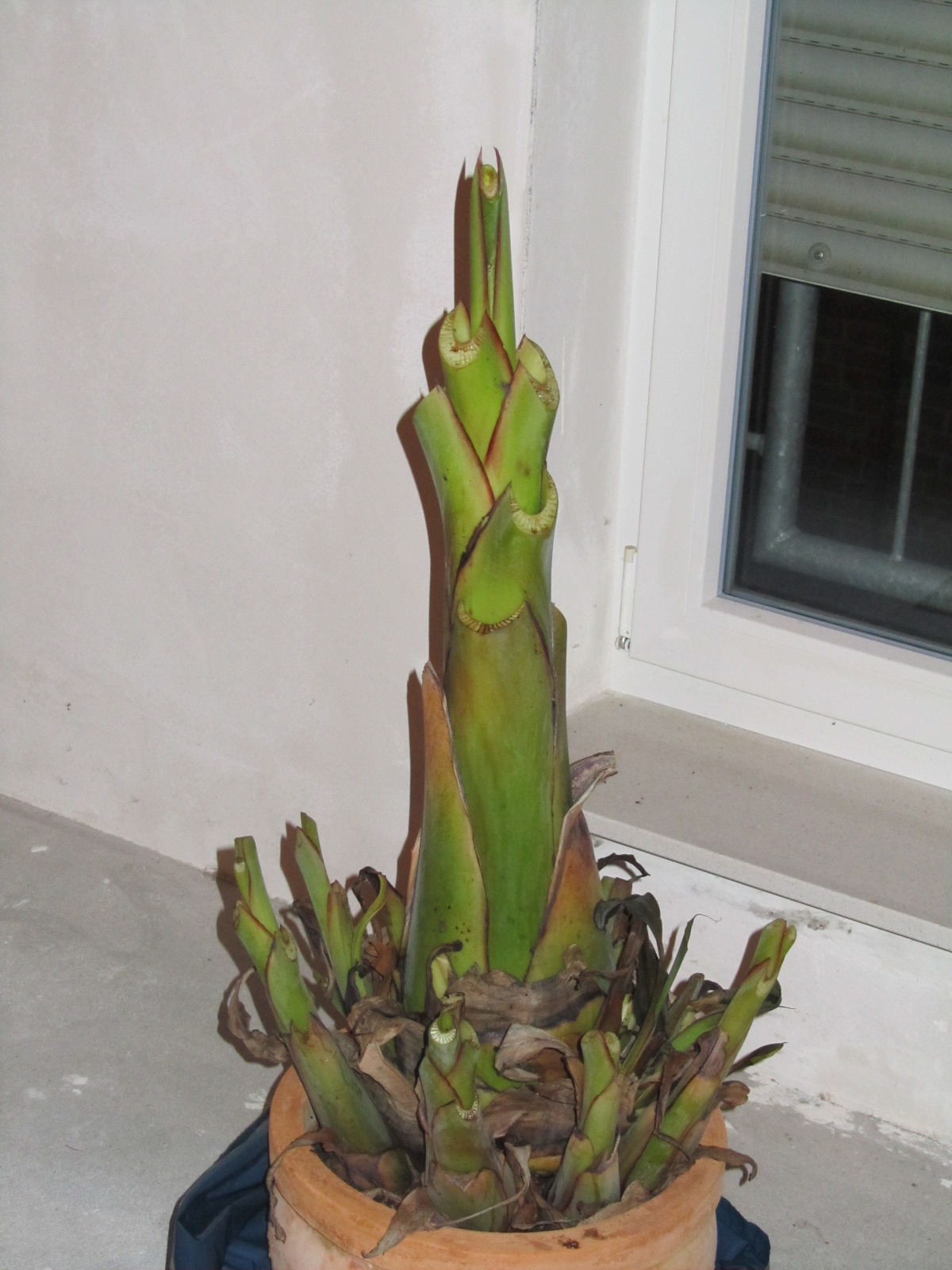 Ich stelle mir gerade vor, wie sie vor der heizenden Heizung steht. Dadurch wird bestimmt das Wachstum gut angeregt, aber dafür ist zu wenig Licht da (Tage zu kurz + tendentiell mehr graue Tage als Sonnentage).