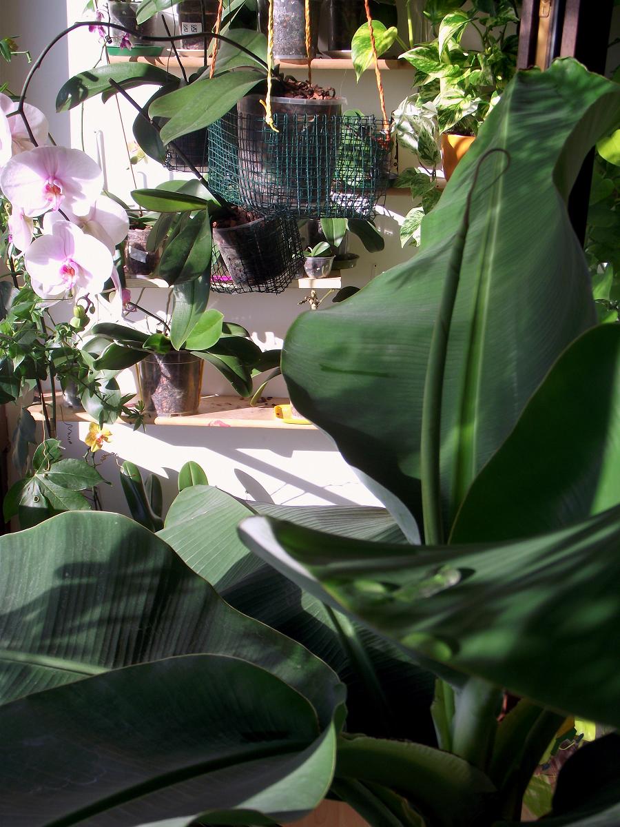Nach Wochen der erste Sonnentag im Wintergarten - 20 Grad und viel Licht schon seit heute Morgen - ich hab das Gefühl meine große Musa freut sich richtig.