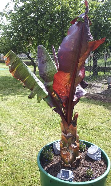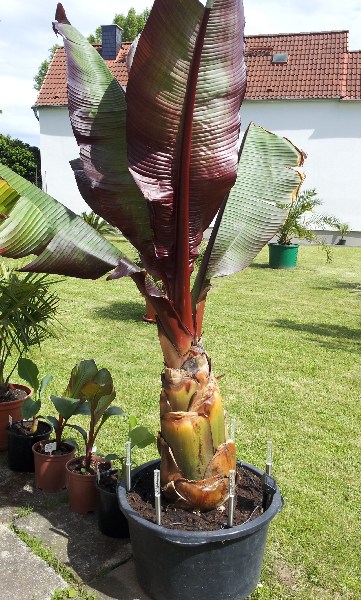 hier im Ruhrgebiet lass ich mir noch ein wenig Zeit mit dem Einräumen. Die Ensete, Basjoo stehen jetzt zwar schon entblättert, bzw gekappt und in Töpfe gequetscht auf der Terasse, aber das auch nur, damit das Substrat langsam abtrocknen kann und ich mir keinen Bruch hebe, wenn ich die in den Keller bringe. Basjoo juckt das nicht und wächst munter weiter. Musella lasiocarpa muß ich erst noch teilen, sie hat einige schon sehr große Kindel ausgebildet