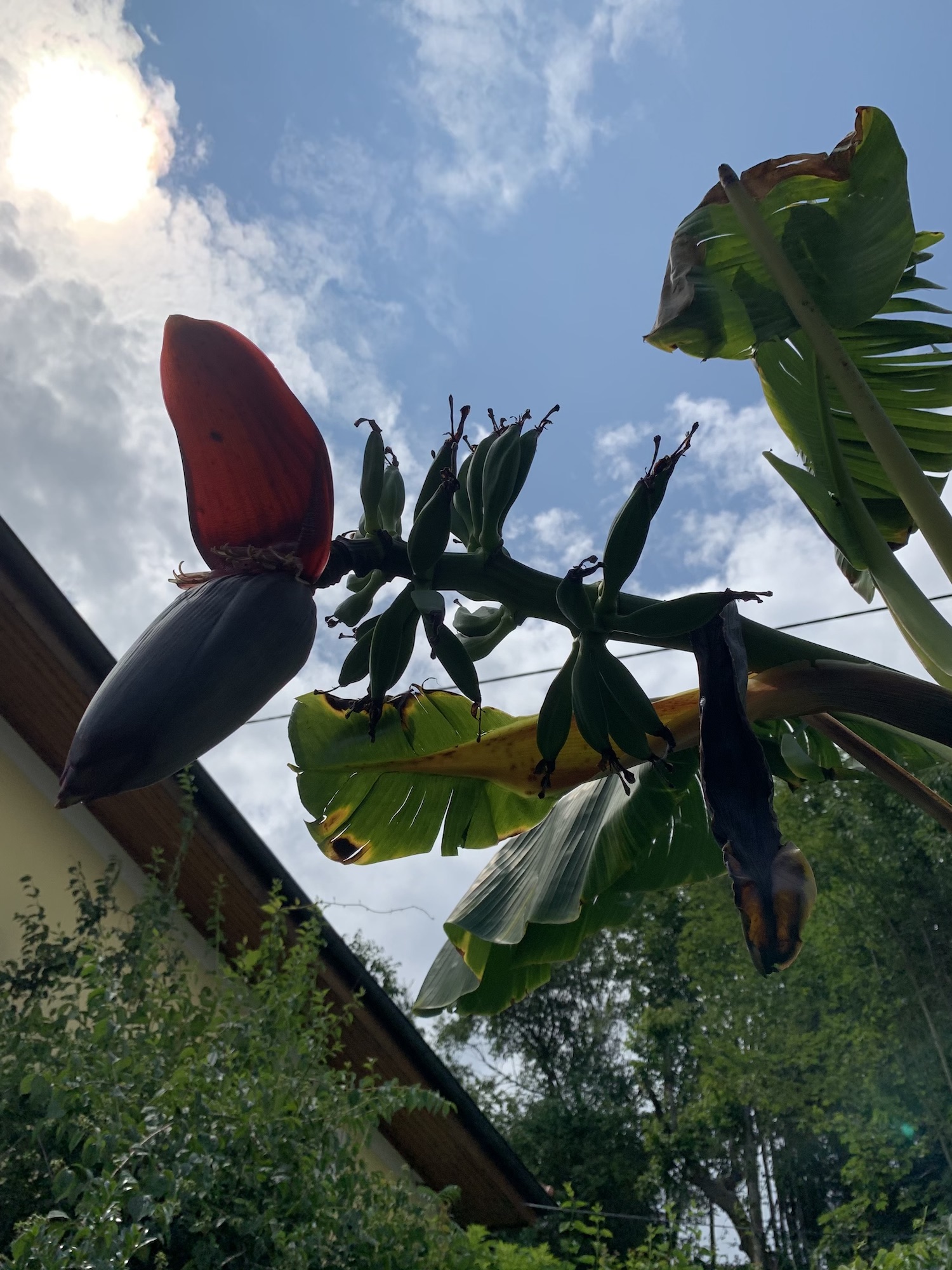 Was meint ihr? Es kommen bereits keine neuen Bananen mehr zum Vorschein, die Blüte wächst aber weiter.