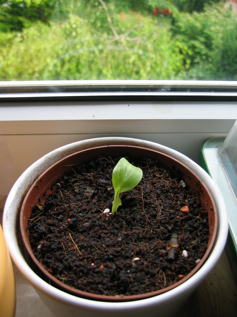 Der Stamm ist verbogen, ein Blatt am Ansatz ziemlich zerrupft. Ich hab sie wieder etwas aufgerichtet, konnte aber nicht lange draussen sein, da es immer noch geschüttet hat und ich auch nicht allzuviel anhatte.
