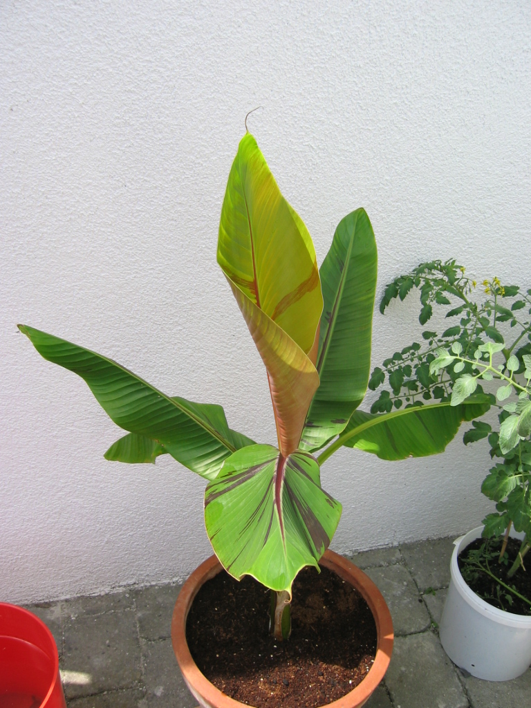 Da haben welche Bananen im Freien stehen, deren Topf nicht annähernd so groß ist wie meiner, die Pflanze darin aber bestimmt dreimal so groß!