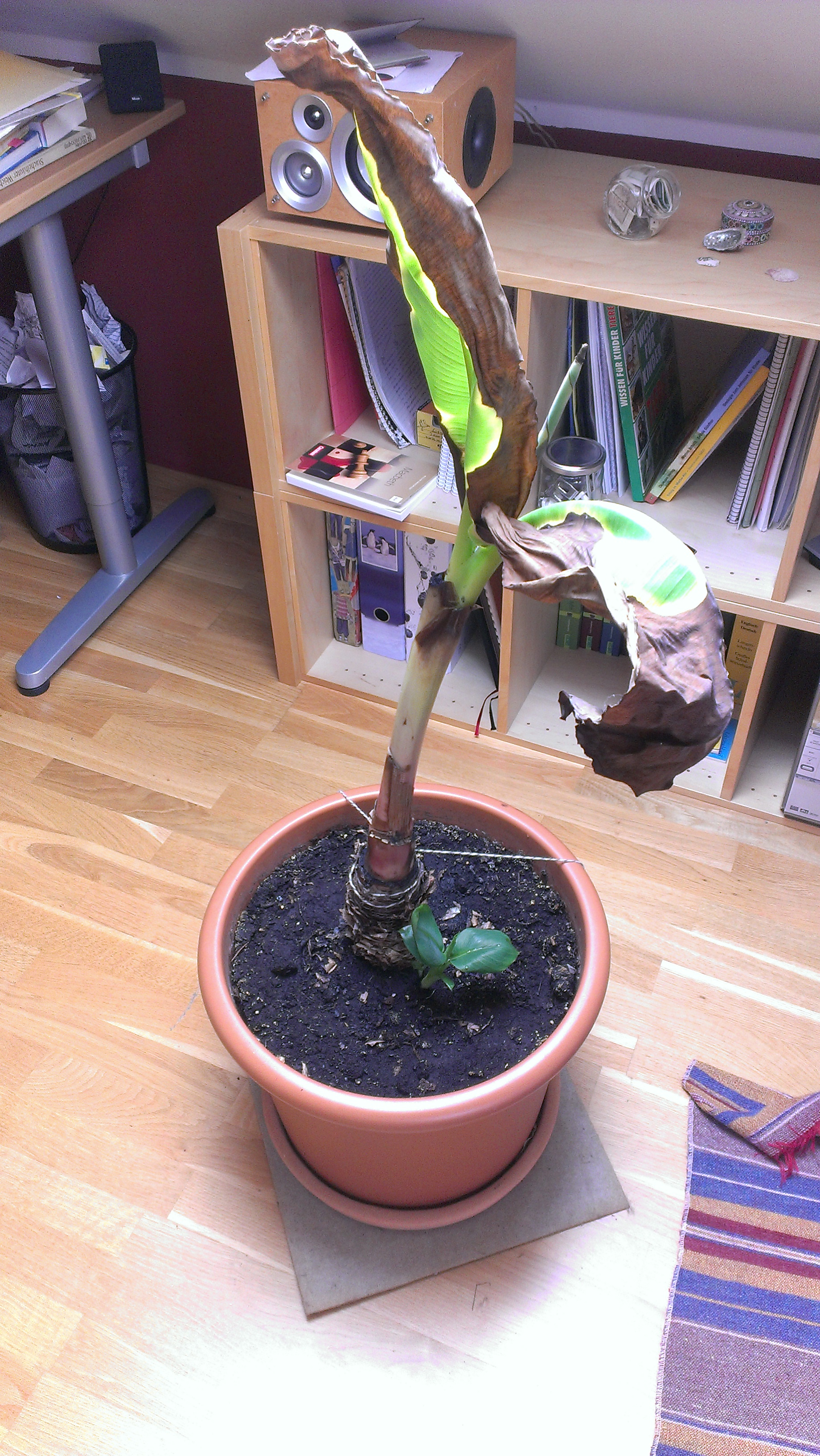 Ich brauche ganz dringend Hilfe! Ich habe nun schon vor Ca 2 1/2 Monaten meiner Bananenstaude zum ersten mal die kindel entfernt und eingepflanzt. Habe mich dabei an Tipps aus dem Internet gehalten: Pflanze von Erde befreien und kindel mit Messer abschneiden... Schon am nächsten Tag sah die mutterpflanze echt traurig aus (hängende Blätter) ich dachte das wäre normal. Jetzt war ich eine Zeitlang nicht da und jemand anderes hat sich um die Pflanze gekümmert.. oder vielleicht auch nicht denn Sie sieht Ganz schrecklich aus. Vorher hatte Sie ca 7 Blätter jetzt nur noch zwei ganz welke, trotzdem hat Sie noch zwei winzige pflänzchen gemacht. Außerdem musste ich Sie mit einen faden sichern, weil Sie sonst so schief hängt dass ich Angst bekomme, dass Sie gleich abbricht... Den Ablegern gehts auch nicht so gut aber wesentlich besser. Jetzt versuche Ich doch noch Meine Pflanze zu retten denn ich habe sie Schon seit 5 Jahren. Aber ich weiß nicht wie... Habt ihr ein paar Tipps oder vielleicht sogar Erfahrungen? Ist es ausweglos oder kann man Sie doch reanimieren?