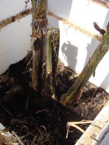 heute Nachmittag hab ich meine Basjoo ausgepackt, die ich zum zweiten mal draußen überwintert habe. Seht selbst, ich hab für euch ein paar Fotos gemacht.