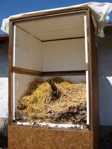 Das tolle ist an meiner Box, wenn sie offen ist und es ist sonnig ist es drinnen richtig richtig warm und wenn es nochmal kalt (frost) wird kann ich die beiden abgenommenen Platten wieder dranschauben und alles ist gut.