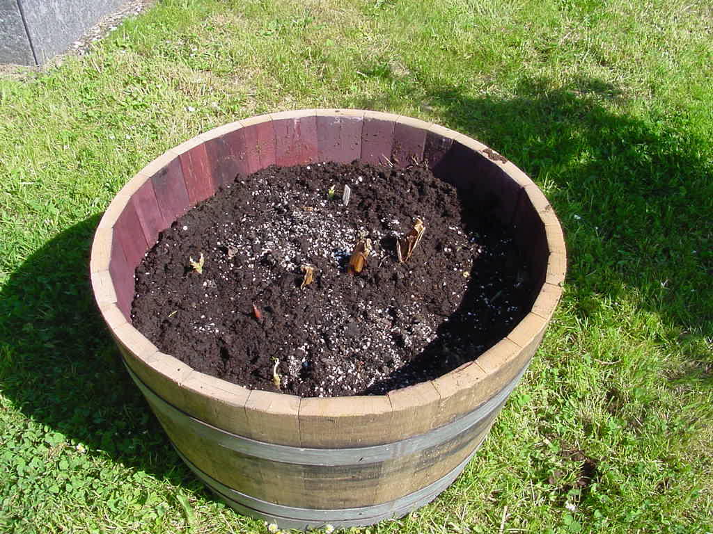 Das einzige Problem bei alten Fässern ist, dass sie vermutlich nicht mehr dicht genug sind, um Wasser einzufüllen. Deswegen muss in den Fässern immer - auch im Winter - Wasser sein.
