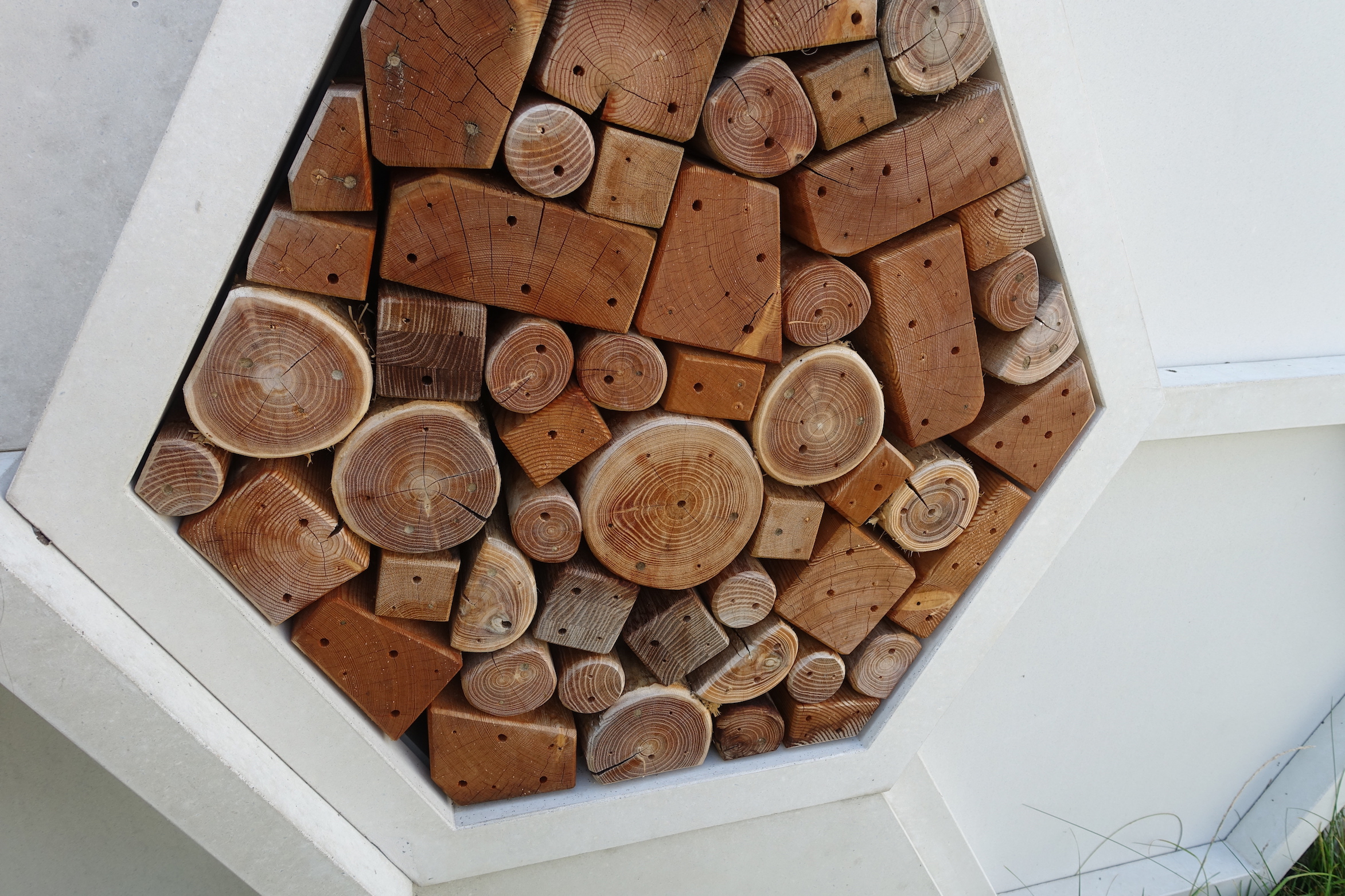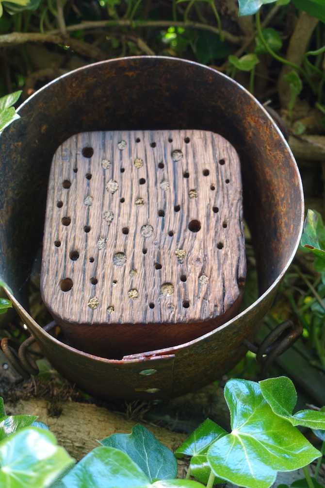 Die Löcher werde ich noch nachbohren, die sind stellenweise ganz schön ausgefranst und nichts für zarte Bienenflügelchen. Konnte ich bis vor kurzem aber nicht machen, weil dauernd Flugbetrieb an der Nisthilfe war....