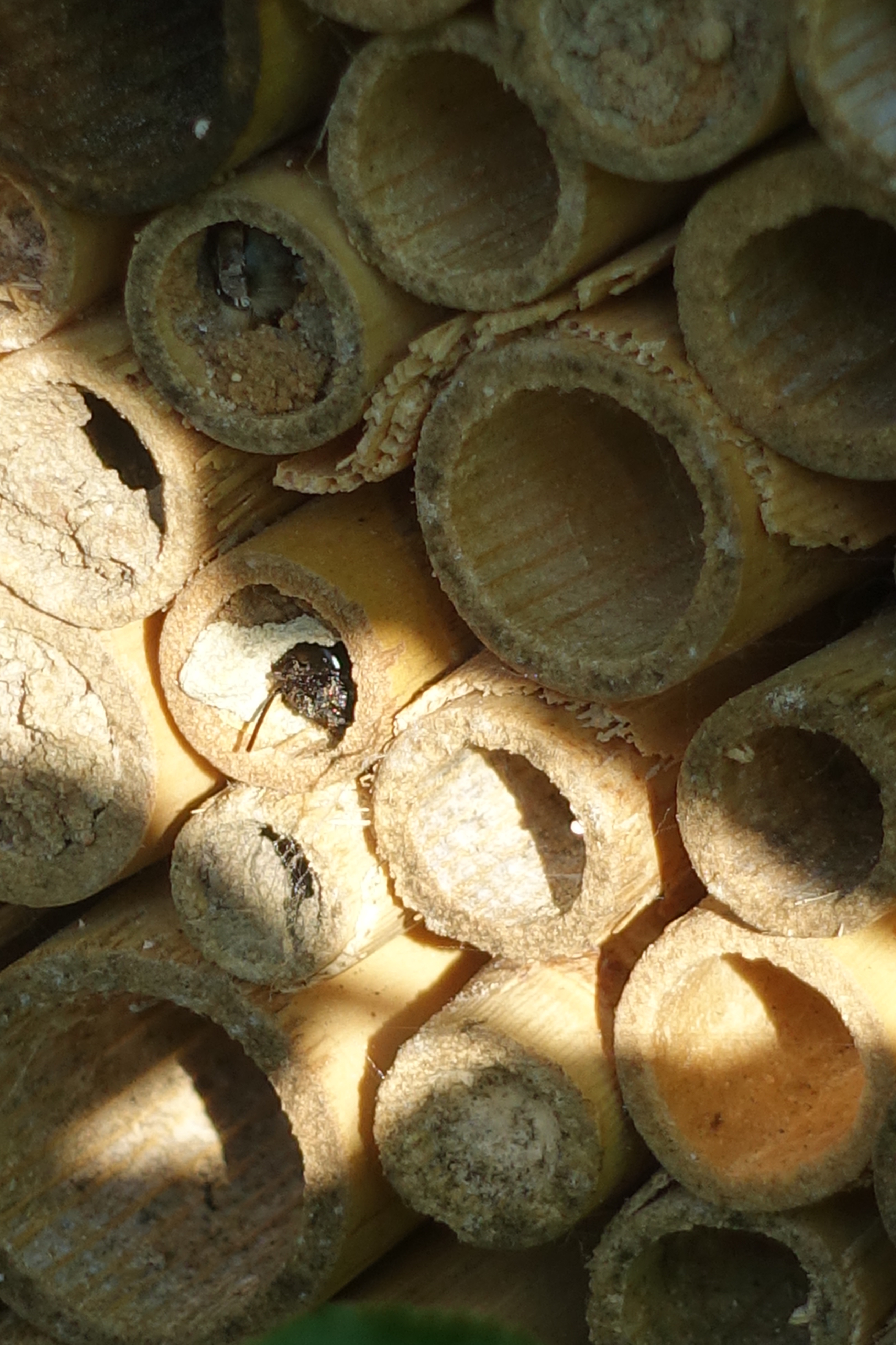Die Mauerbienen sind netterweise recht flexibel und nehmen viel an, aber dass in den großen Löchern irgendeine Biene genistet haben soll ??