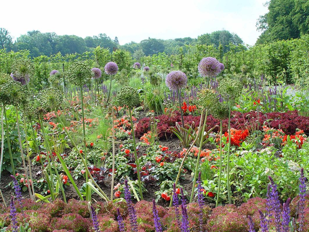 Bauerngärten verbinden seit jeher das Nützliche mit dem Schönen: Sie waren in erster Linie Nutzgärten, die die Bauernfamilie und ihr Gesinde ernährten. Welche Pflanzen angebaut wurden, ergab sich aus dem Zweck des Gartens. In geometrisch angelegten Beeten wuchsen Blumen, Gemüse und Kräuter nach einem sinnvollen Plan, aber durcheinander. Die strenge Form der Bauerngärten hat sich bis heute erhalten: Durch die symmetrische, in vier Quadrate geteilte Anordnung der Beete wurde Platz gespart, eine ausgewogene Mischkultur von robusten Gemüsesorten, Blumen, Küchen- und Heilkräutern sorgte für effiziente, natürliche Schädlingsbekämpfung und gute Ernte. Pflegeleichte Sommerblumen und anspruchslose, wunderschön blühende Stauden, wie z. B. Iris, Rittersporn, Königskerze, Dahlien und Ziersalbei, mit ihren kräftigen Farben waren ganz nebenbei dekorative Elemente. Im späten Mittelalter entwickelte sich ein weiteres typisches Merkmal des Bauerngartens: Damals hatte man aus praktischen Gründen begonnen, die Beete mit Buchs einzufassen, damit die Erde bei starkem Regen nicht auf die Wege gespült wurde. Zudem schützten die kleinen Hecken die Pflanzen vor Wind und Kälte. Im Laufe der Jahrhunderte veränderte sich auch das Pflanzensortiment: Heimische Pflanzen bekamen „exotische“ Partner wie Lilien und Rosen oder mediterrane Kräuter, landesübliche Gemüsesorten wurden durch neue Züchtungen erweitert.
