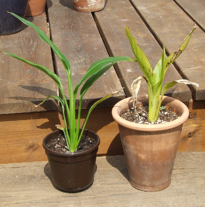 der ruppige, helle ist meiner - den habe ich aber 2 wochen nach dem keimen auch raus auf die terrasse gestellt........ der andere ist mein pflegekind, da mach' ich solche experimente nicht, der darf schön drinnen gaaaanz hell unterm dachflächenfenster stehen