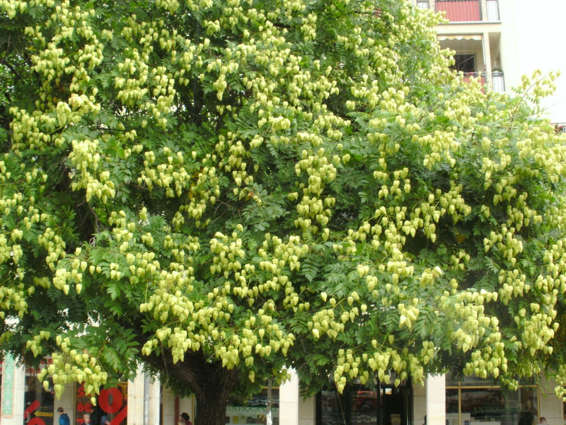 war letzte Woche in Dresden und habe viele dieser Bäume gesehen. Sie haben laternen-ähnliche hellgrüne Früchte. Kennt jemand den Namen dieses Baumes?