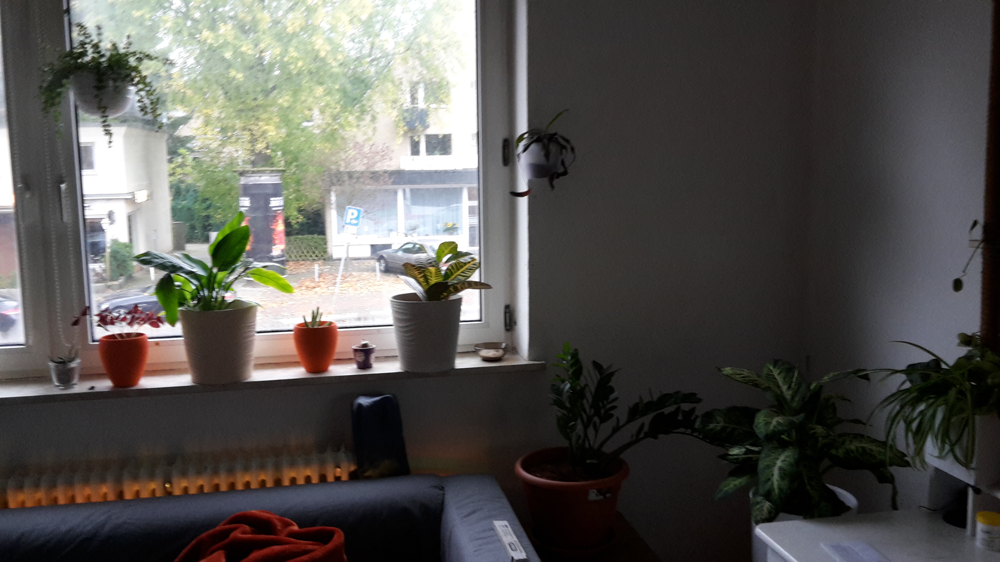 Rechts vom Sofa habe ich noch Platz und weil die Ecke sonst so unglaublich verwaist aussieht, würde ich mir dort gerne einen großen Topf mit einem schönen neuen grünen Mitbewohner hinstellen. Am liebsten wäre mir ein Zimmerbaum, dessen Äste ich dann gerne überm Sofa am Fenster entlang führen würde. Und das nach Möglichkeit, ohne sämtliches Licht aus dem Zimmer zu verbannen ^^
